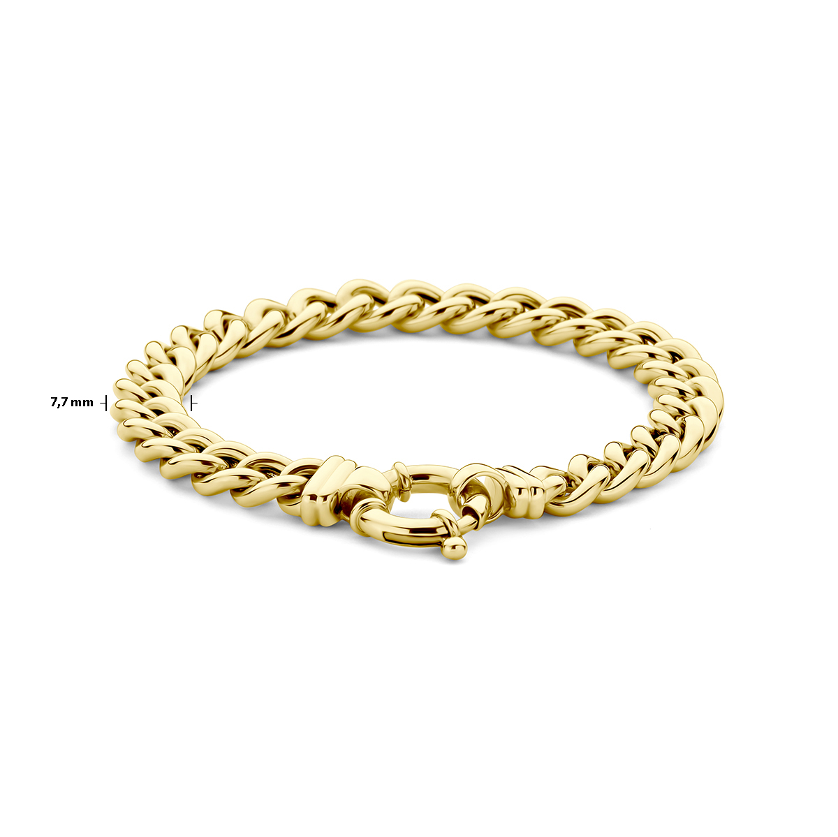 14k Geelgouden armband met een draaglengte van 19cm. De schakelbreedte is 7.7mm. Uitgevoerd met een groot veerslot.