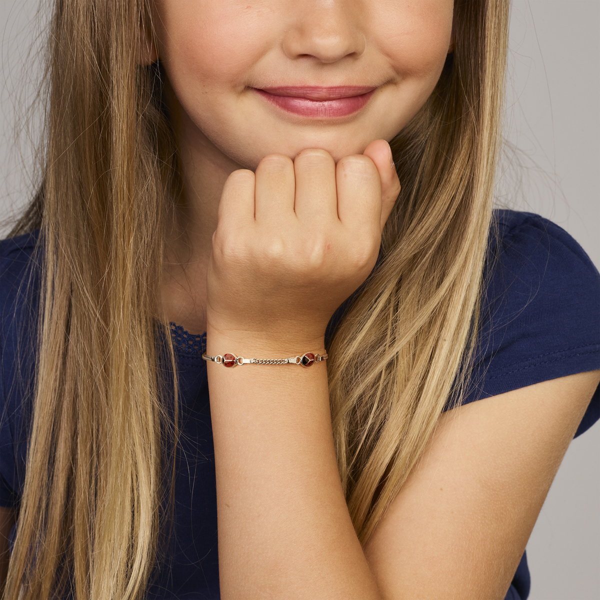 Gerhodineerd 925 zilveren armband uitgevoerd met 3 lieveheersbeestjes. De armband heeft draaglengtes van 11-13cm.