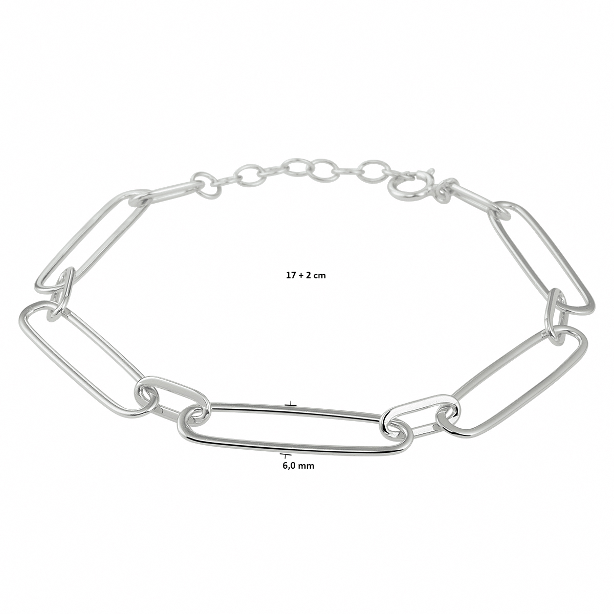 Gerhodineerd 925 zilveren armband met een schakelbreedte van 6mm. De armband heeft een draaglengte van 17cm met een extensie van 2cm.