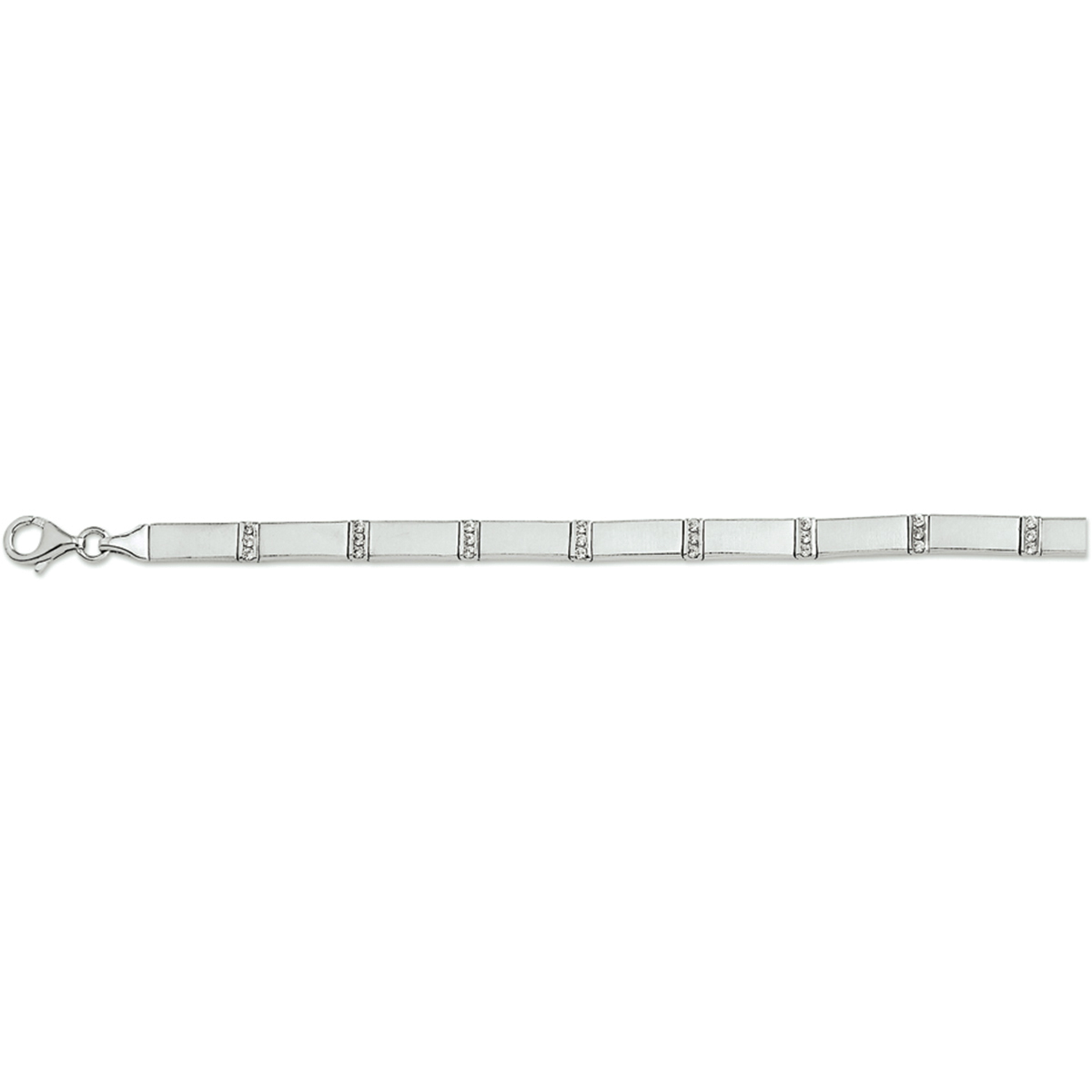 Beschrijving: Gerhodineerd zilveren armband met zirkonia en een poli/matte afwerking.