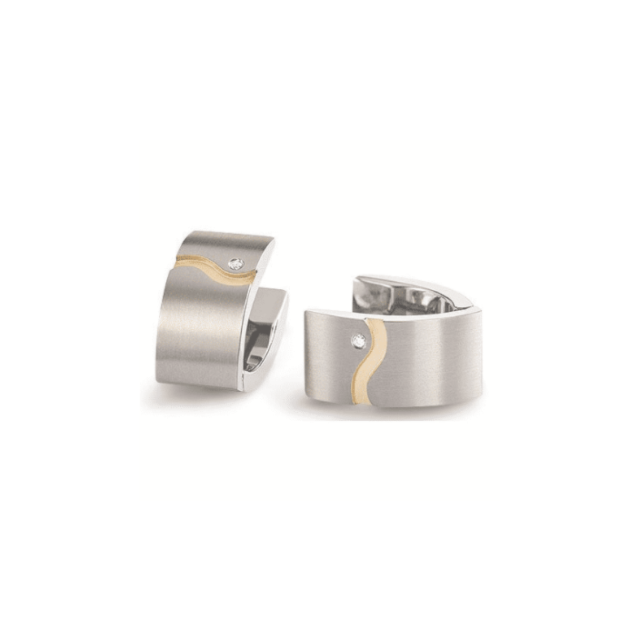Deze gematteerde oorsieraden van Boccia Titanium hebben een goudkleurig accent en diamant. De met de hand gezette diamanten in dit sieraad zorgen voor een sprankelend effect. De oorsieraden hebben een afmeting van 15 x 7,5mm.