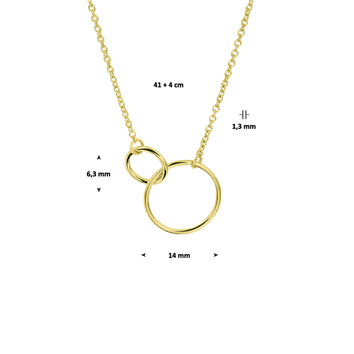 Beschrijving: Trendy zilveren 1.2mm anker collier met goudkleurig laagje met een lengte van 41cm en een extensie van 4cm uitgevoerd met open cirkels van 8mm en 14mm. Tip: Combineer dit collier met bijpassende sieraden uit onze collectie en maak een trendy en hippe set!.