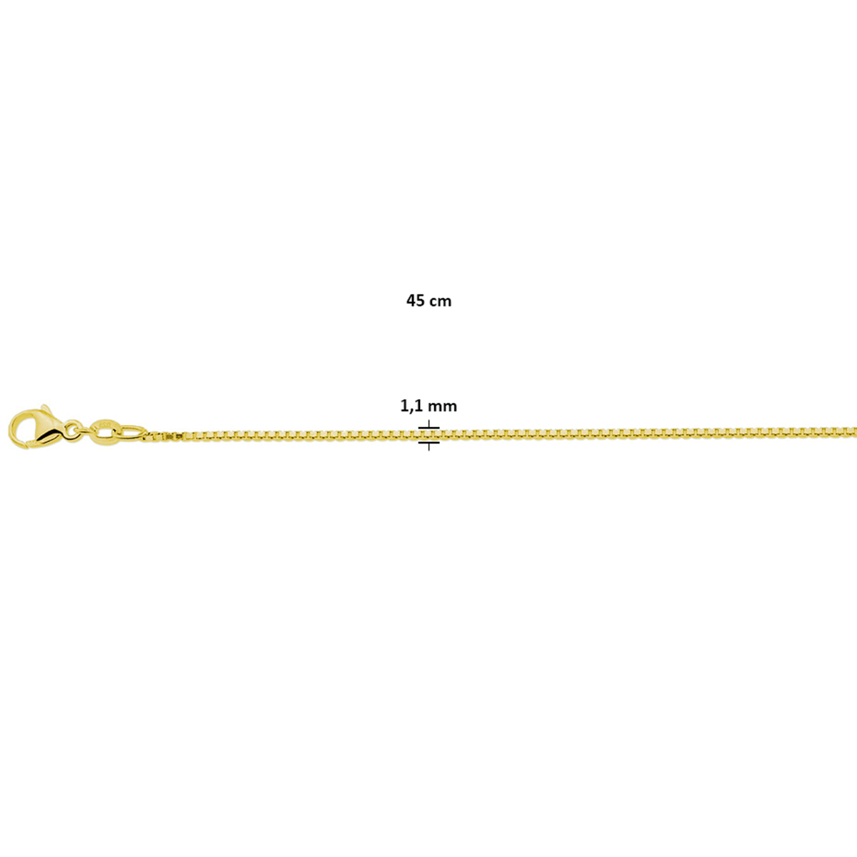 goudkleurig op 925 zilveren venetiaans collier met een schakelbreedte van 1.1mm. Het collier heeft een stevige karabijn sluiting. Geen garantie op plating.