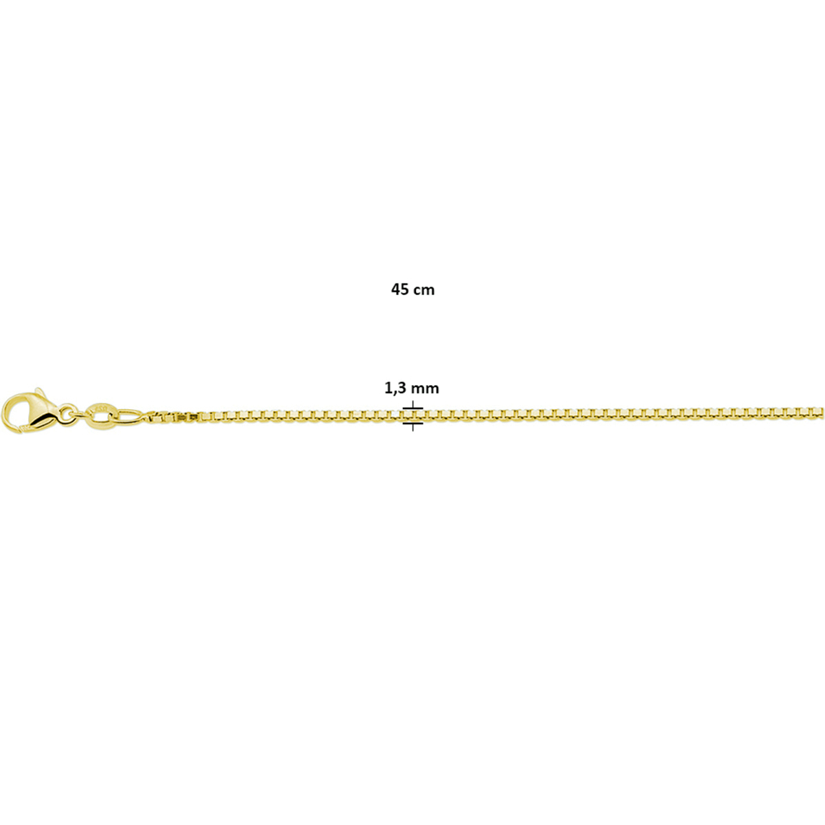 Zilveren venetiaans collier met een schakelbreedte van 1.3mm. Het collier heeft een stevige karabijn sluiting. Geen garantie goudkleurige op plating.