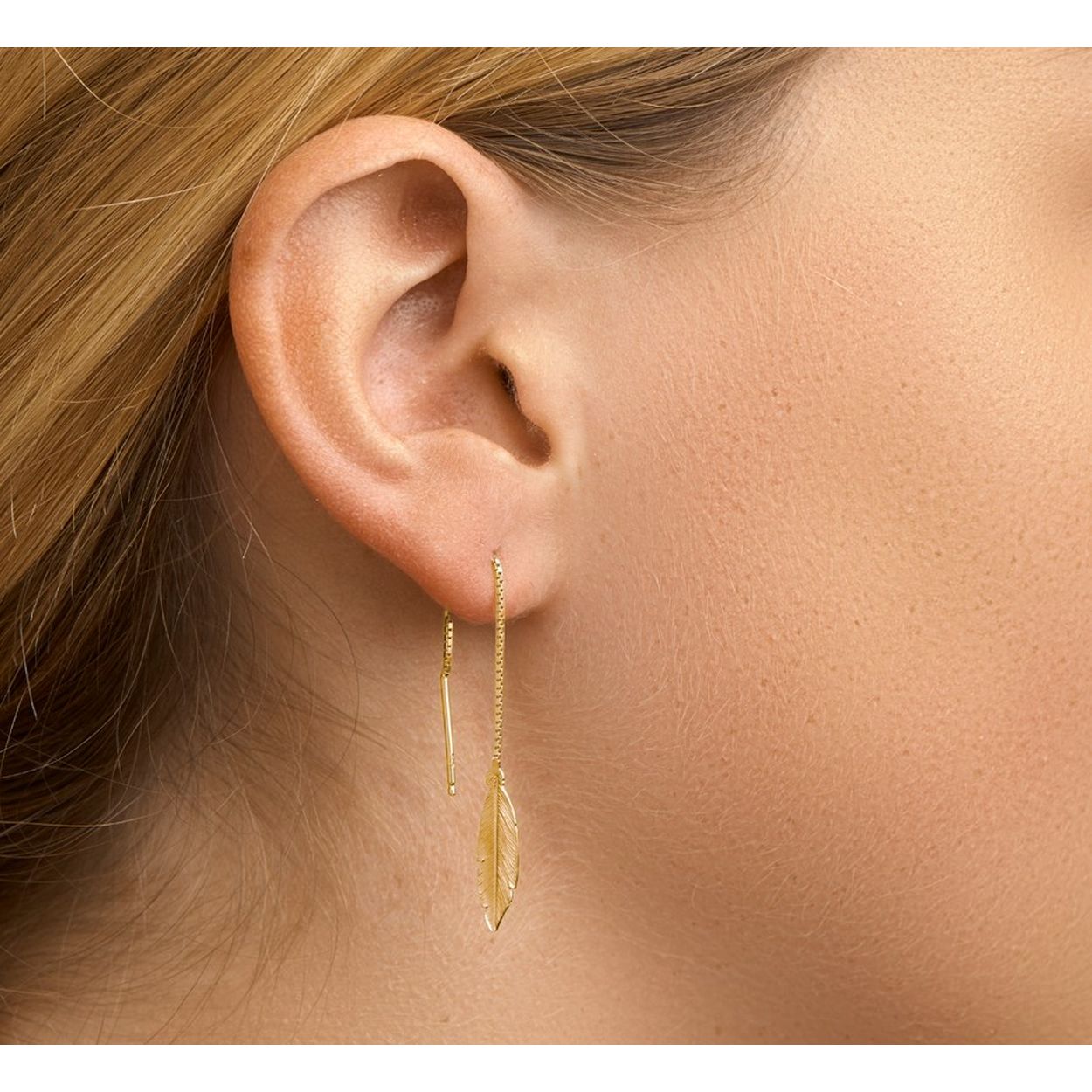 Gerhodineerd 925 zilveren doortrekoorbellen uitgevoerd met een veer. De doortrekoorbellen hebben een totale lengte van 7.5cm. De veer heeft een afmeting van 19x5mm.