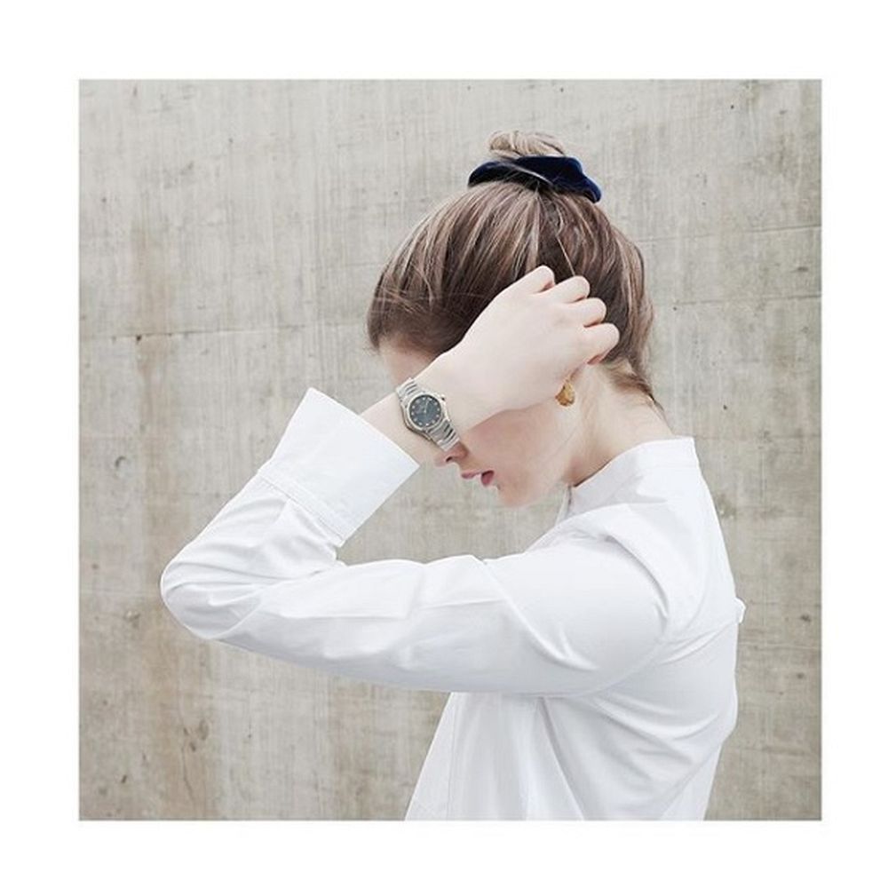 De ronde horlogekast is 5 ATM waterdicht en is voorzien van saffierglas