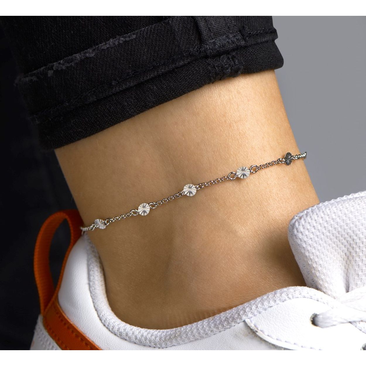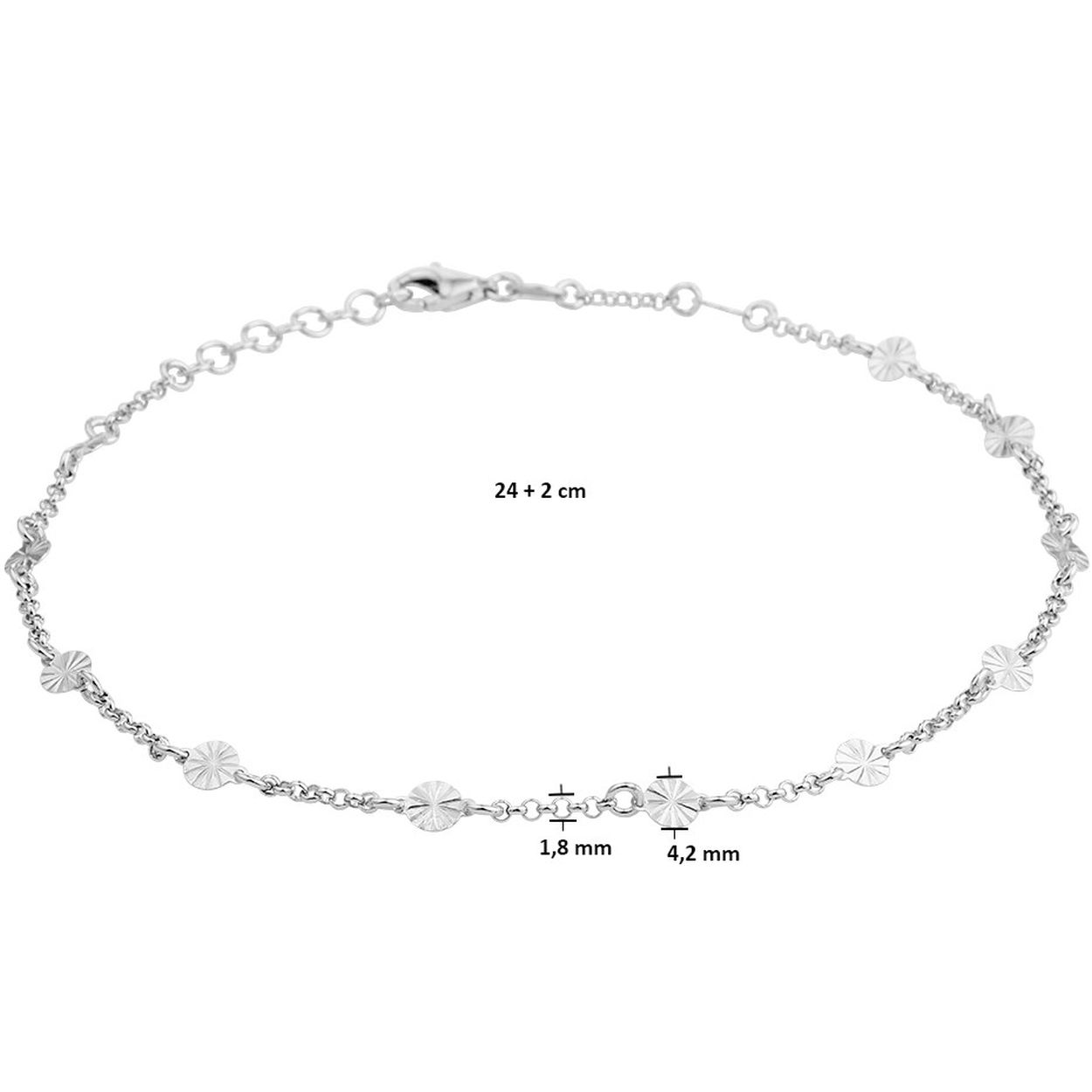 Gerhodineerd 925 zilveren enkelbandje met een breedte van 4.2mm en uitgevoerd met een stevige karabijn sluiting. Het enkelbandje heeft een draaglengte van 24cm met een extensie van 2cm.