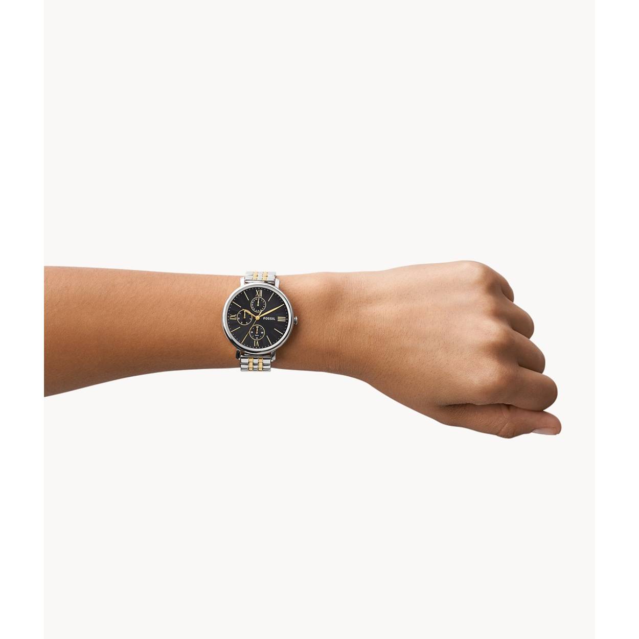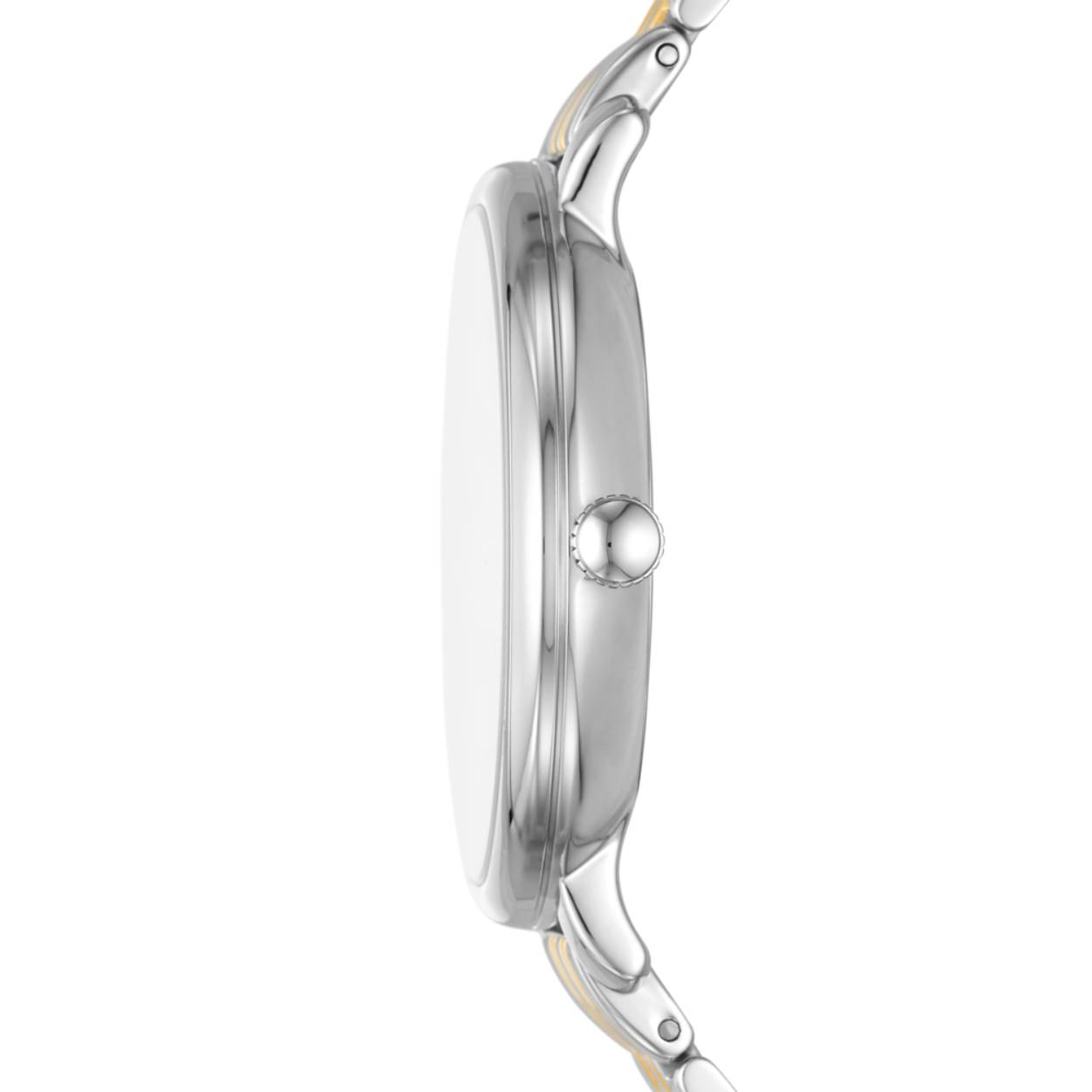 Bicolor dameshorloge met 24-uurs-, dag- en datumaanduiding.