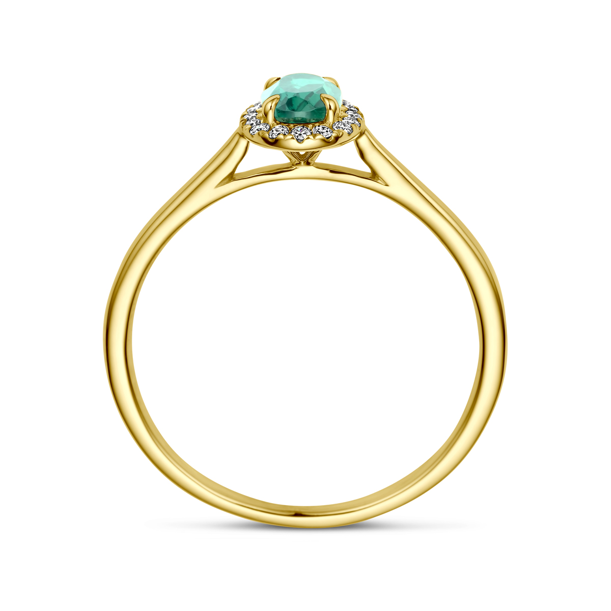 14k Geelgouden ring uitgevoerd met lab grown smaragd en lab grown diamanten. De ring heeft een afmeting van 8x6.5mm en het diamantgewicht is 0.075ct. Lab grown diamanten zijn diamanten die ontstaan in een laboratorium. Onder extreem hoge druk en temperatuur wordt het natuurlijk ontstaansproces nagebootst met als eindresultaat een diamant met dezelfde chemische eigenschappen maar met een andere oorsprong.
