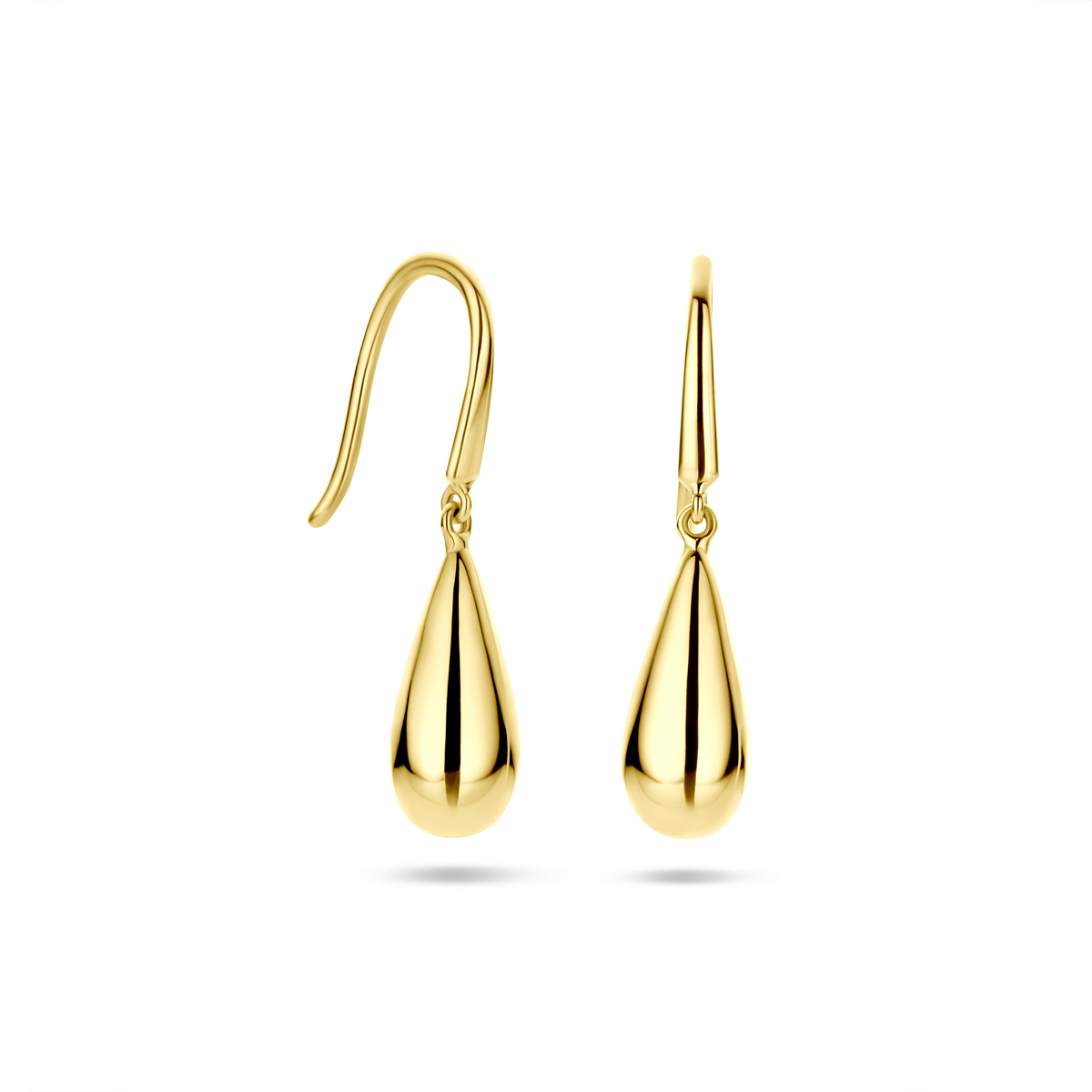 14k Geelgouden oorhangers uitgevoerd met een druppel. De oorhangers hebben een afmeting van 14.5x5.5mm.