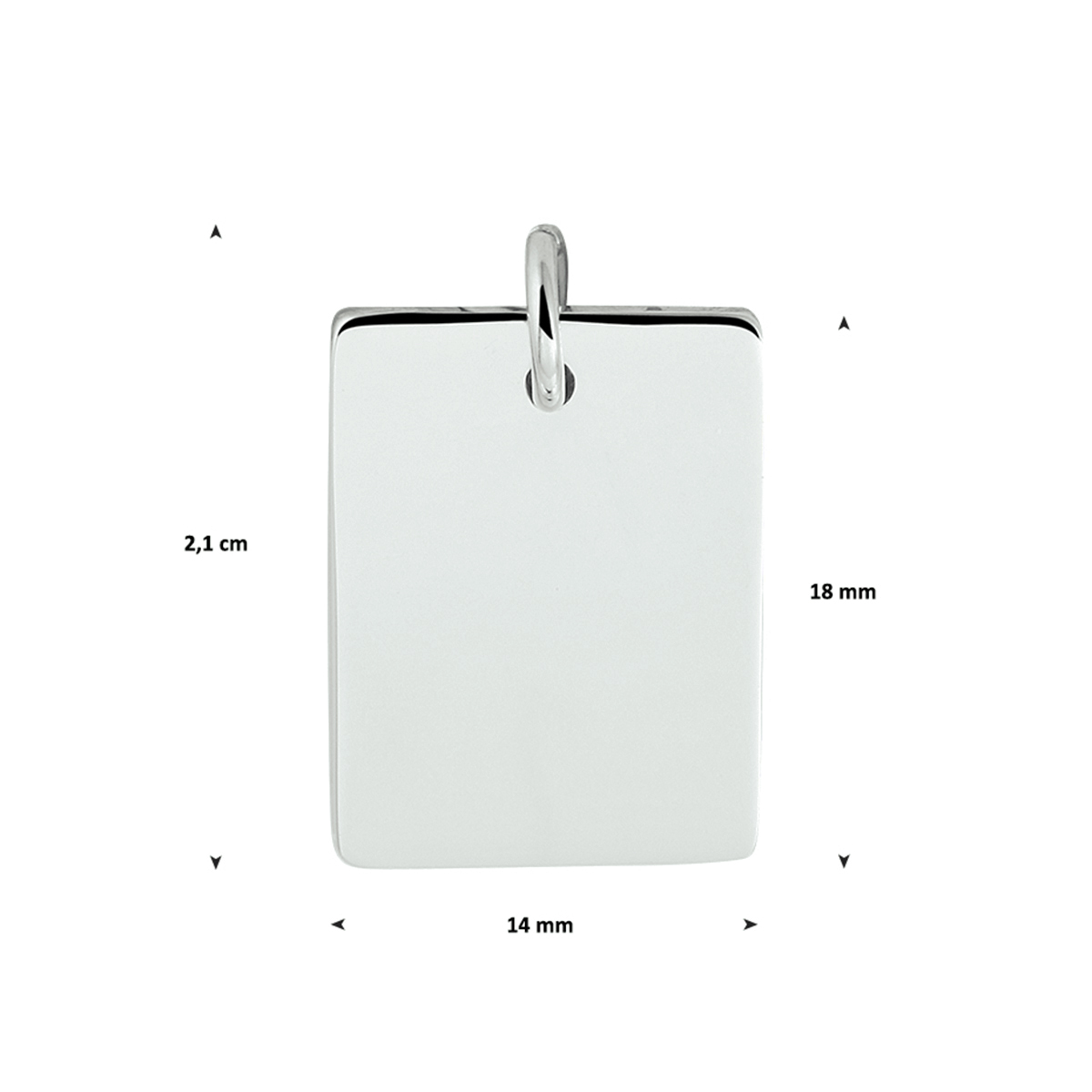 Gerhodineerd zilveren graveerhanger met een afmeting van 18x14mm. De hanger heeft een totale hoogte van 21mm.