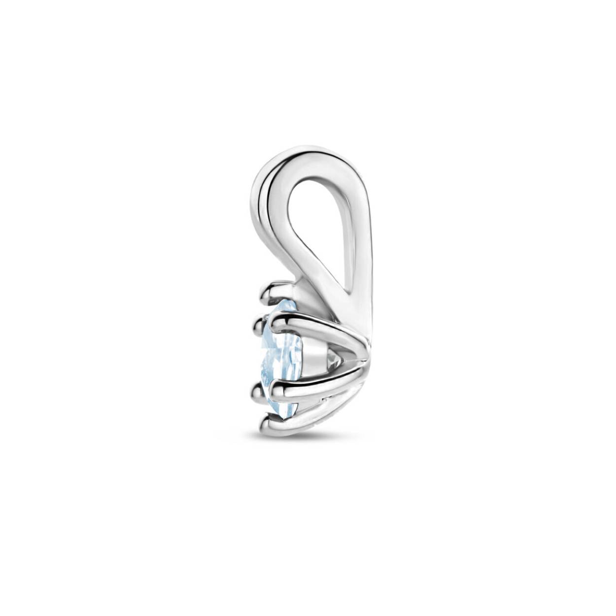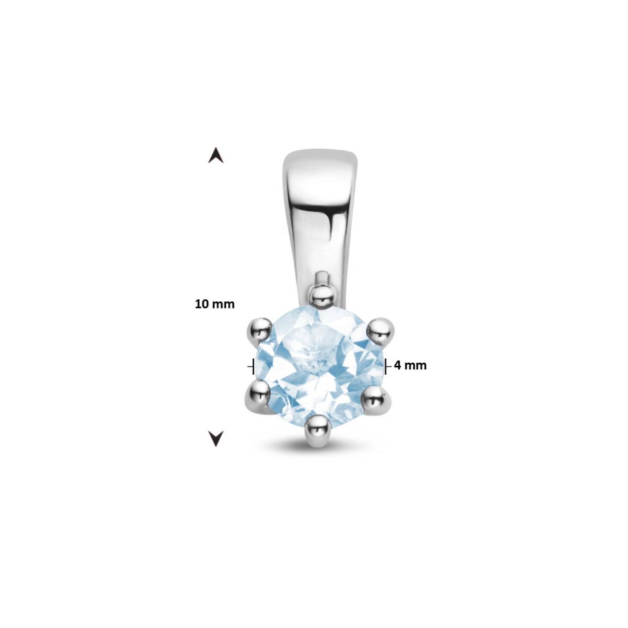 Gerhodineerd 925 geboortesteen zilveren hanger uitgevoerd met een schitterende aquamarijn. De hanger heeft een afmeting van 10x5mm. De aquamarijn heeft een steengewicht van 0.23ct.