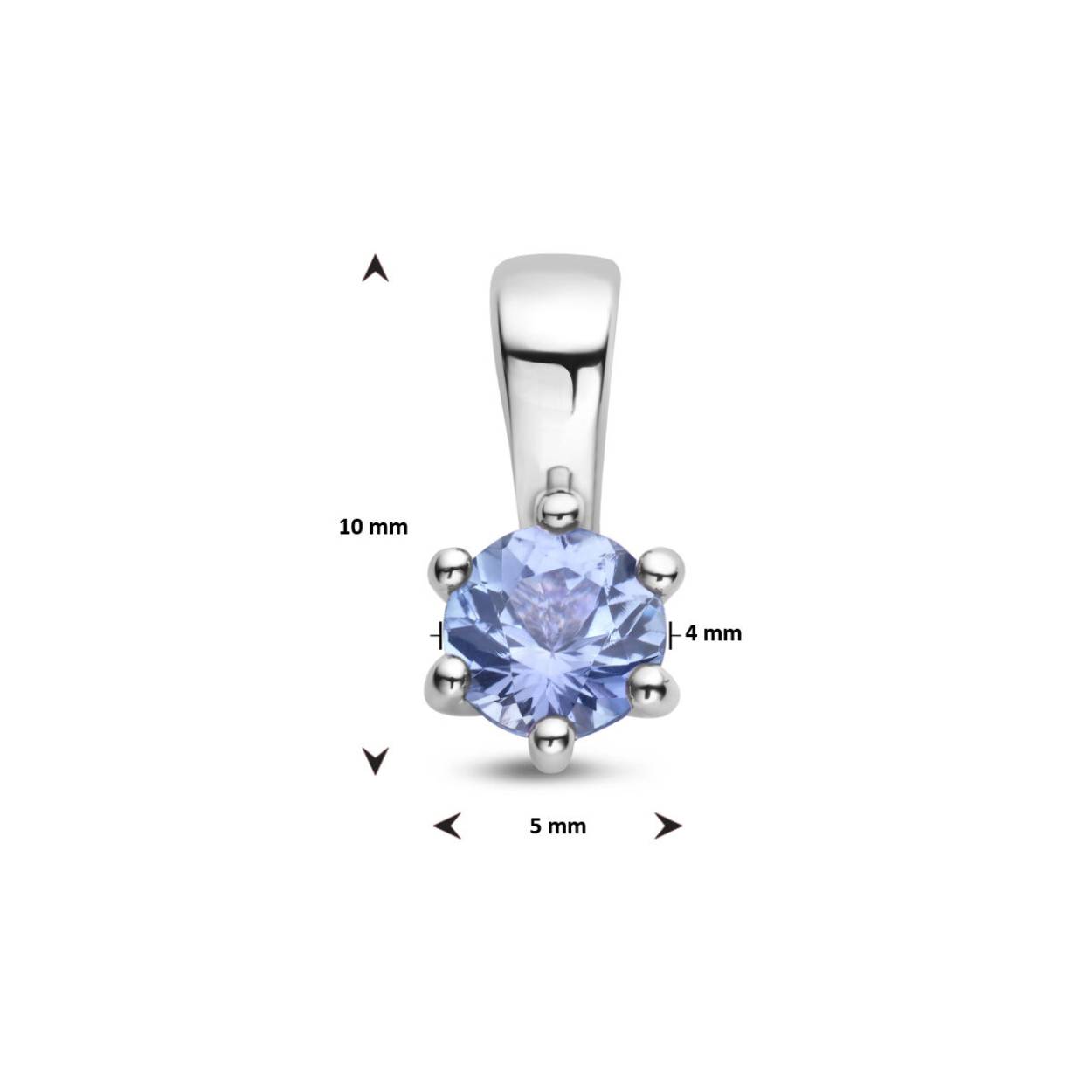 Gerhodineerd 925 geboortesteen zilveren hanger uitgevoerd met een schitterende tanzaniet. De hanger heeft een afmeting van 10x5mm. De tanzaniet heeft een steengewicht van 0.29ct.