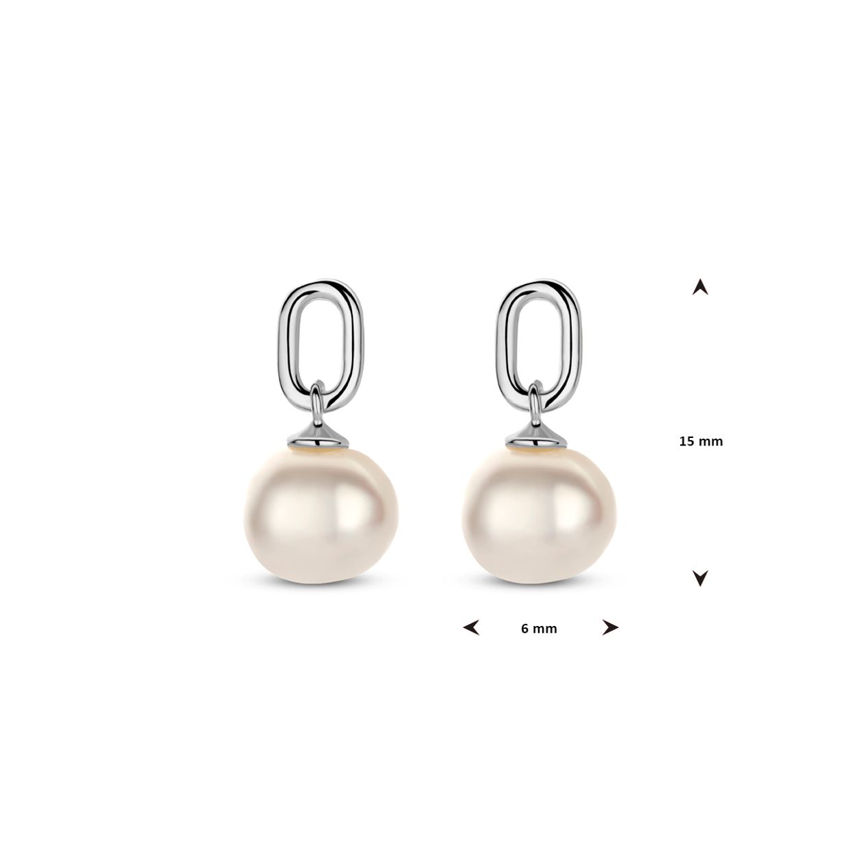 Gerhodineerd 925 zilveren oorhangers uitgevoerd met zoetwaterparel. De oorhangers hebben een totale hoogte van 15mm.