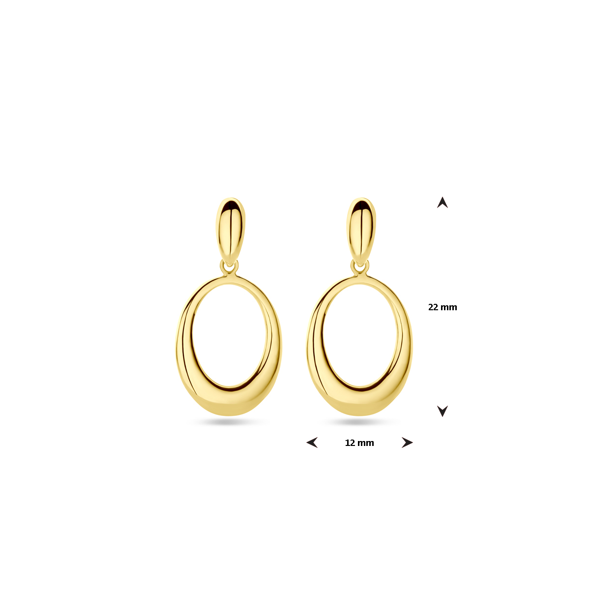 14k Geelgouden oorhangers met een totale hoogte van 22mm.
