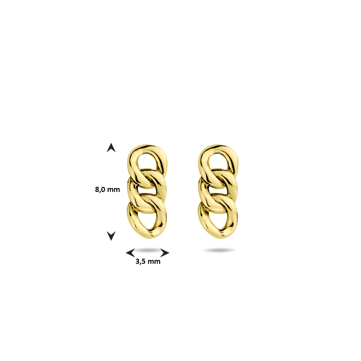 925 Zilveren oorhangers uitgevoerd in schakelvorm. De oorhangers hebben een laagje van 14 karaat wat de armband goudkleurig maakt. De oorhangers hebben een afmeting van 8x3.5mm.