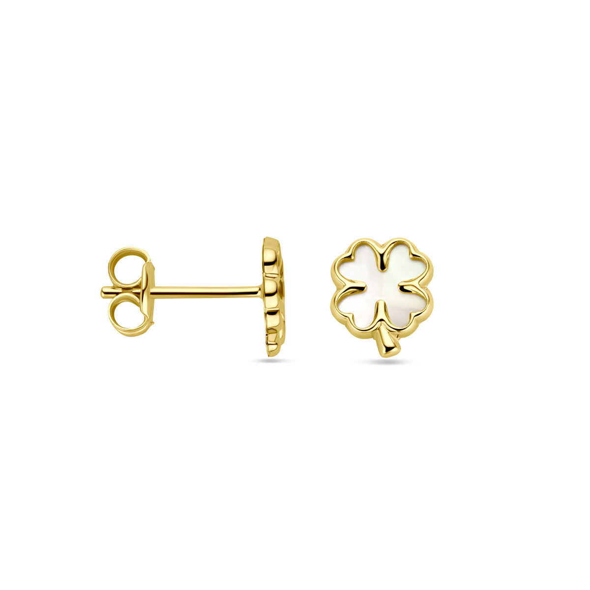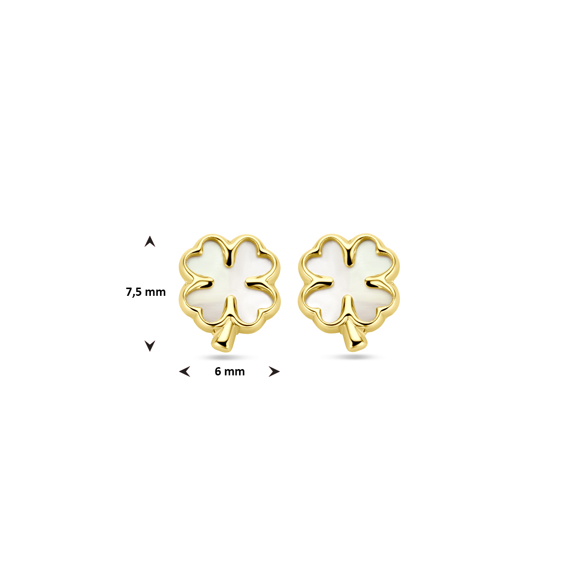 14k Geelgouden oorknoppen uitgevoerd in de vorm van een klavertje. De oorknoppen hebben een afmeting van 7.5x6mm.