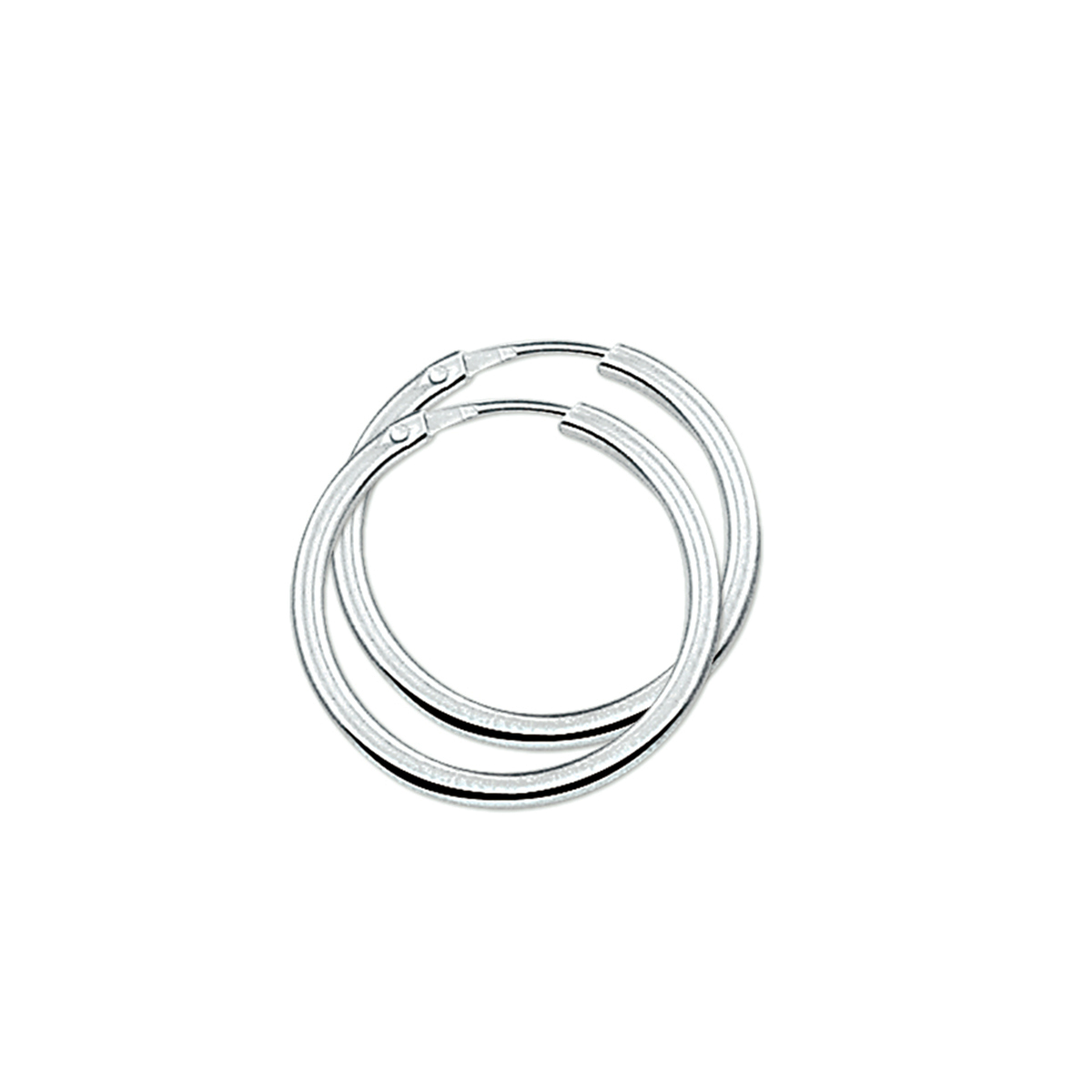 Beschrijving: Gerhodineerd zilveren creolen met een vierkante buis en een scharnier-sluiting.