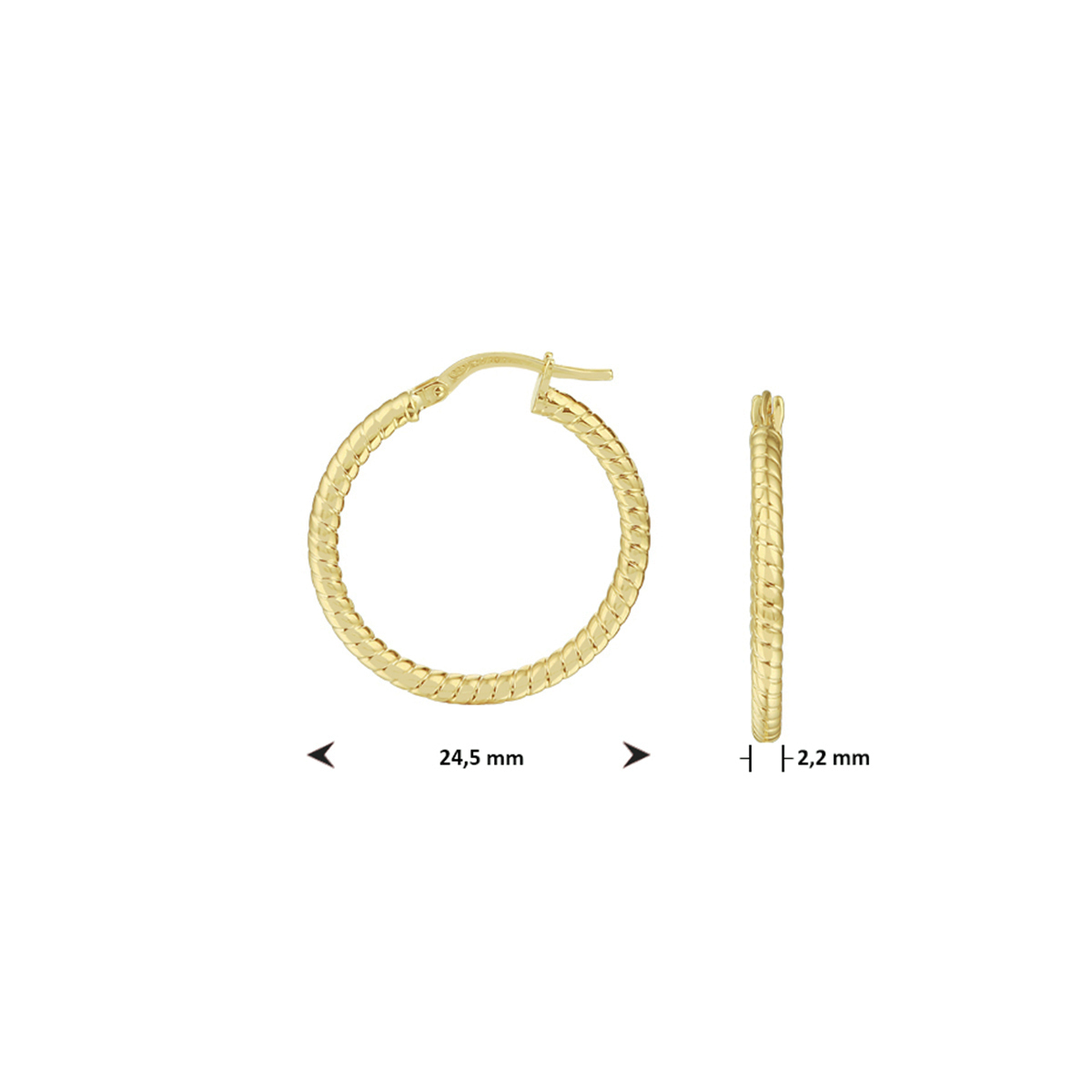 14k Geelgouden oorringen met een 925 zilveren kern. De oorringen hebben een diameter van 24.5mm en een dikte van 2.2mm.