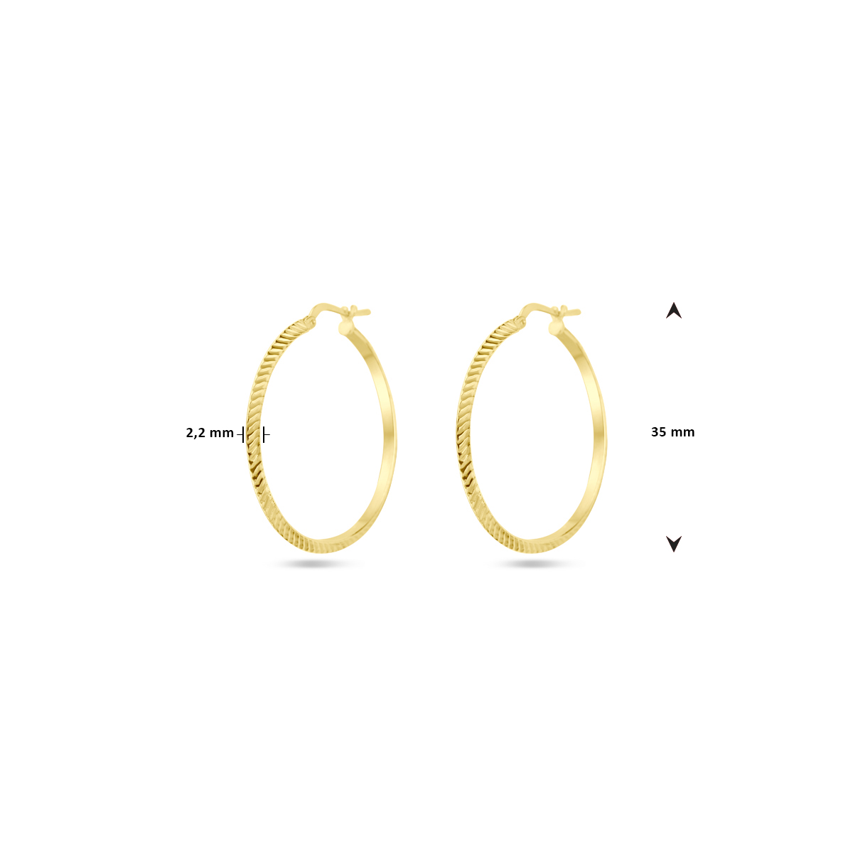 goudkleurig op 925 zilveren oorringen met een breedte van 2.2mm. Geen garantie op de plating.