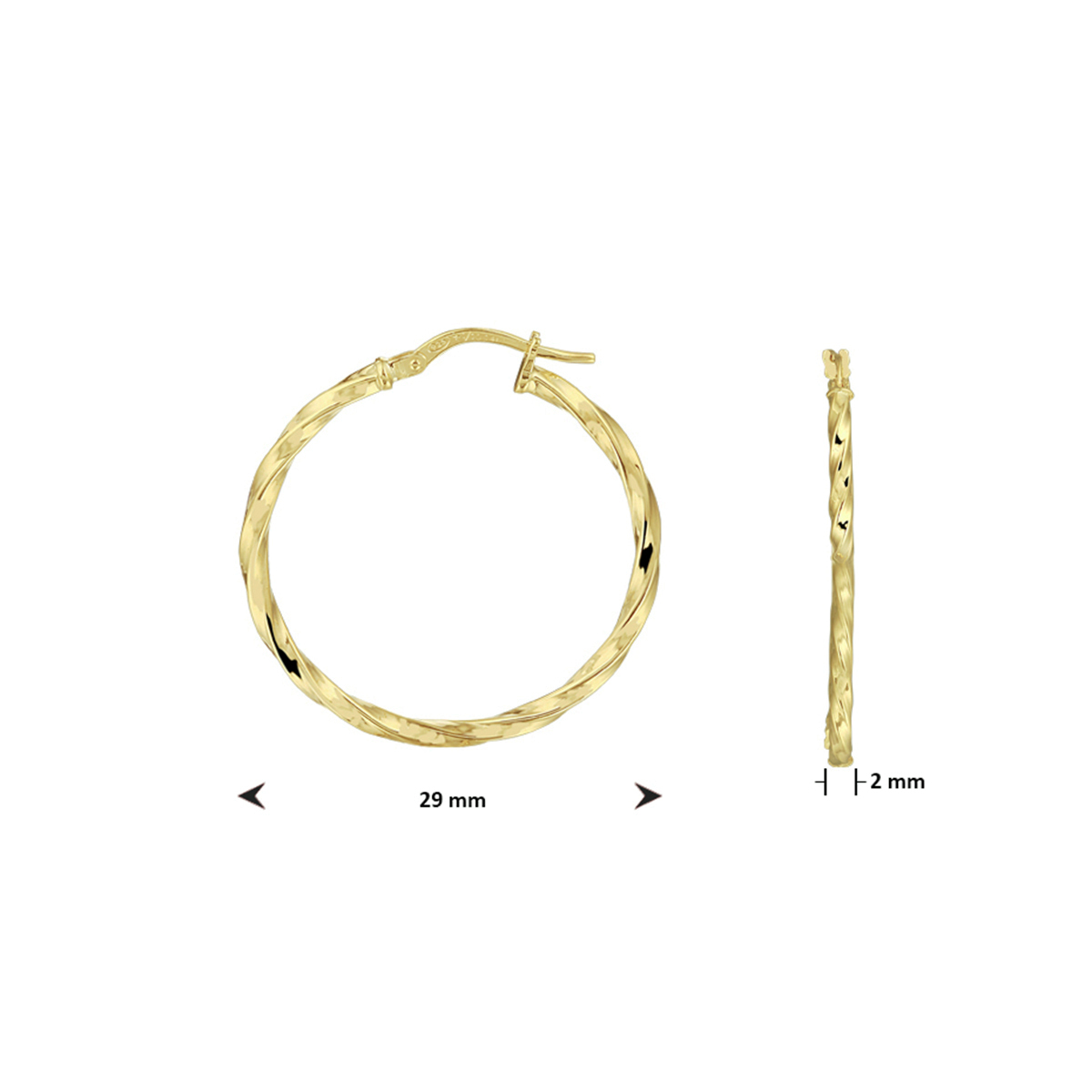 14k Geelgouden oorringen met een 925 zilveren kern. De oorringen hebben een diameter van 29mm en een dikte van 2mm.