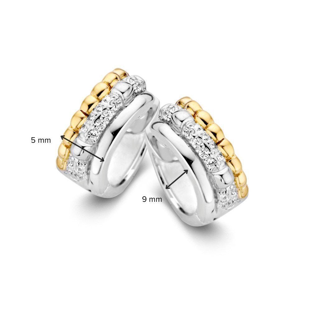 Zilver met 14 karaat gouden creolen en zirkonia Deze oorbellen zijn�onderdeel van een set.