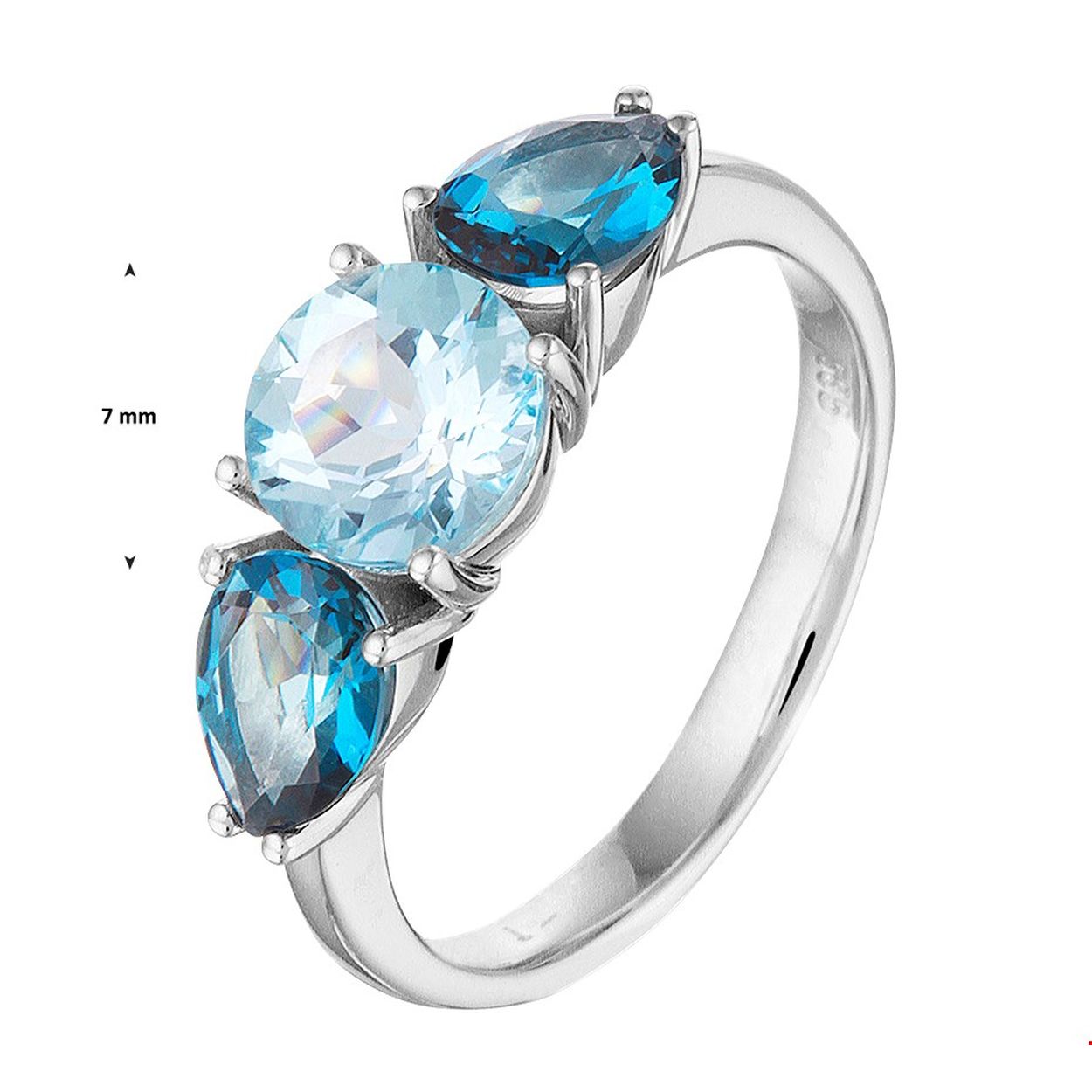 Beschrijving: Luxe witgouden ring uitgevoerd met twee druppelvormige London blue topaas stenen en een ronde blauw topaas. De combinatie van schitterende topaas stenen met witgoud maken dit sieraad tot een ware eyecatcher. Tip: Leuk om kado te geven! Zie je ze al stralen?