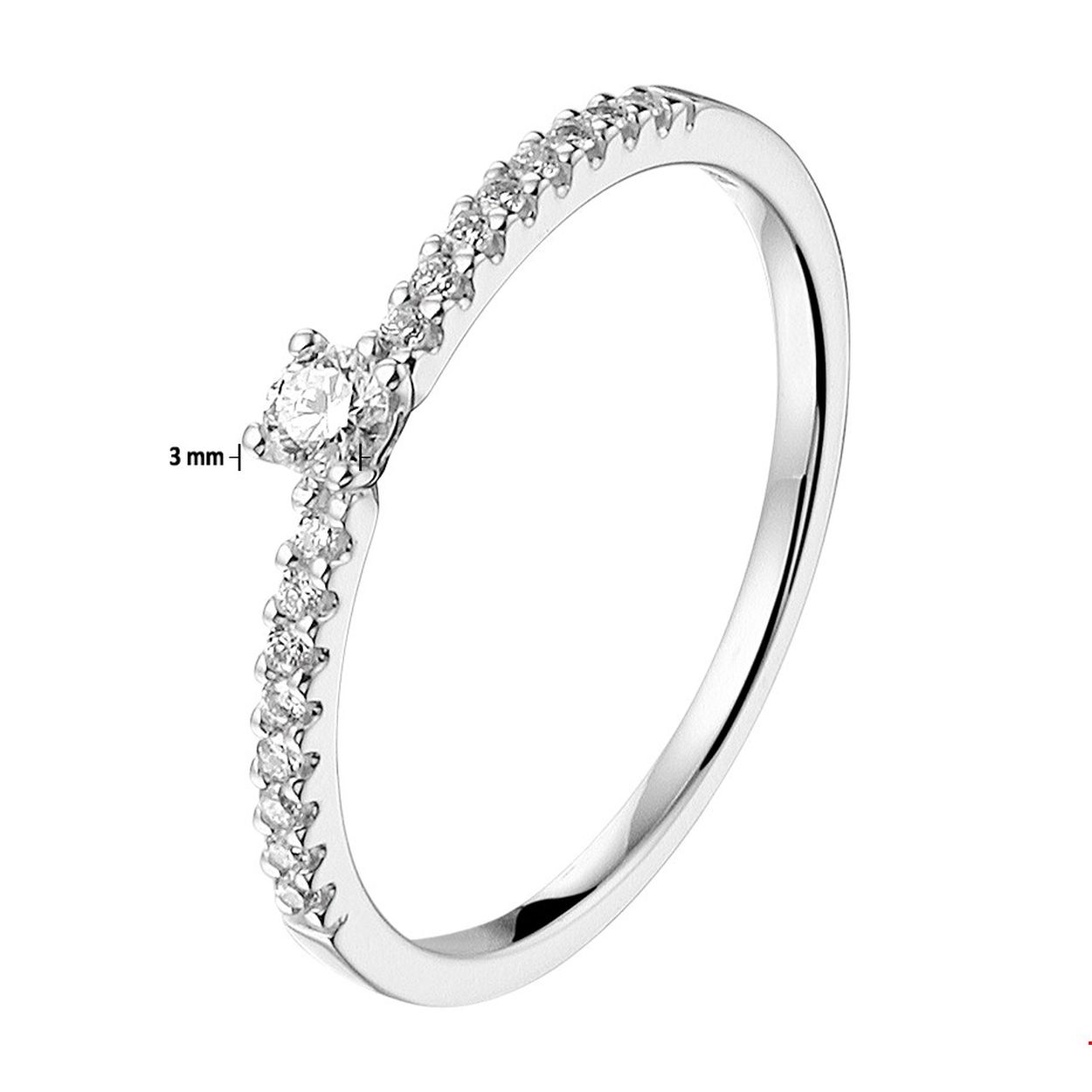 Beschrijving: Luxe 14k witgouden ring uitgevoerd met een schitterende diamant rij. De ring heeft een breedte van 3mm.