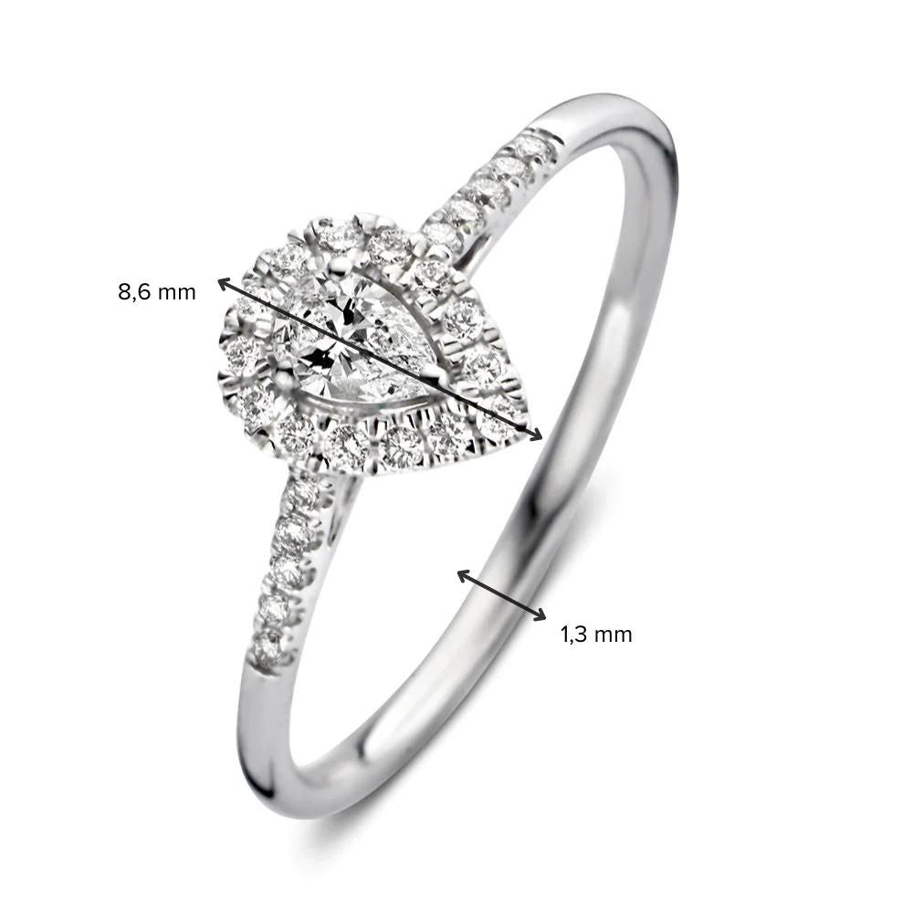 Witgouden ring 'Elin' met peer middensteen (0.17 crt.) en zijstenen