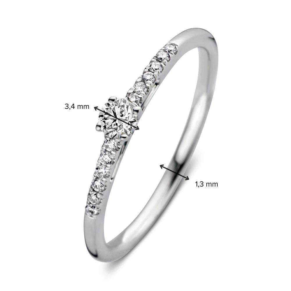 Witgouden ring 'Mary' met briljant middensteen (0.13 crt.) en zijstenen