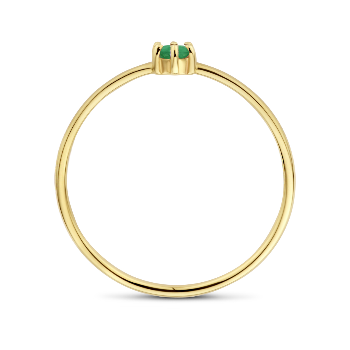 14k Geelgouden ring uitgevoerd met een schitterende smaragd. De ring heeft een breedte van 4mm.