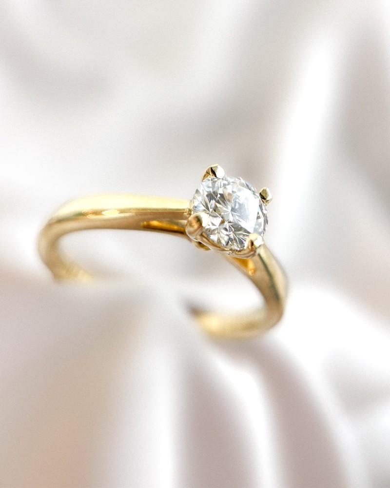 Geelgouden solitair 'Olivia' met 0,75 crt. briljant gemaakt van 18 karaat gerecycled goud.