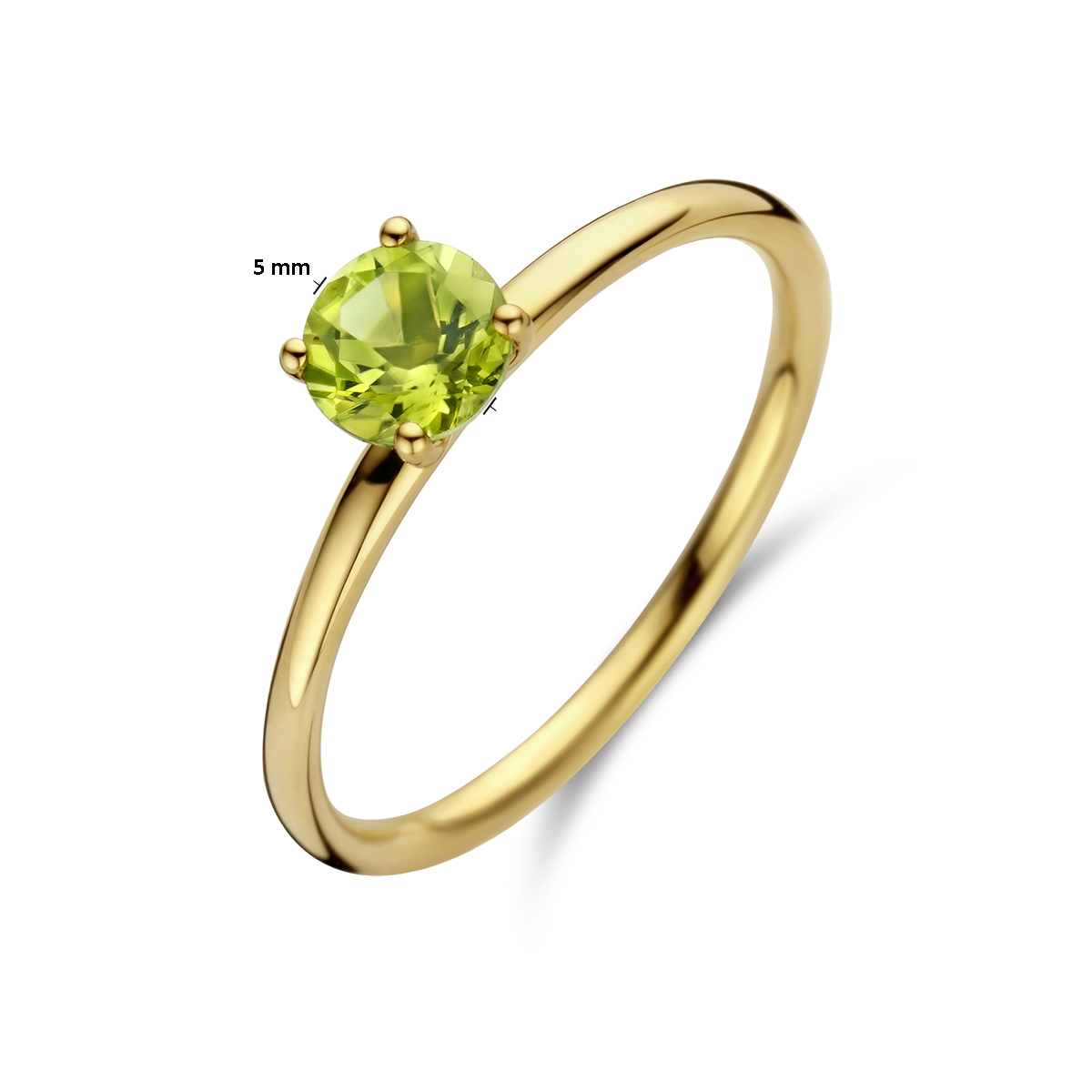 14k Geelgouden ring uitgevoerd met peridot. De ring heeft een breedte van 5mm.