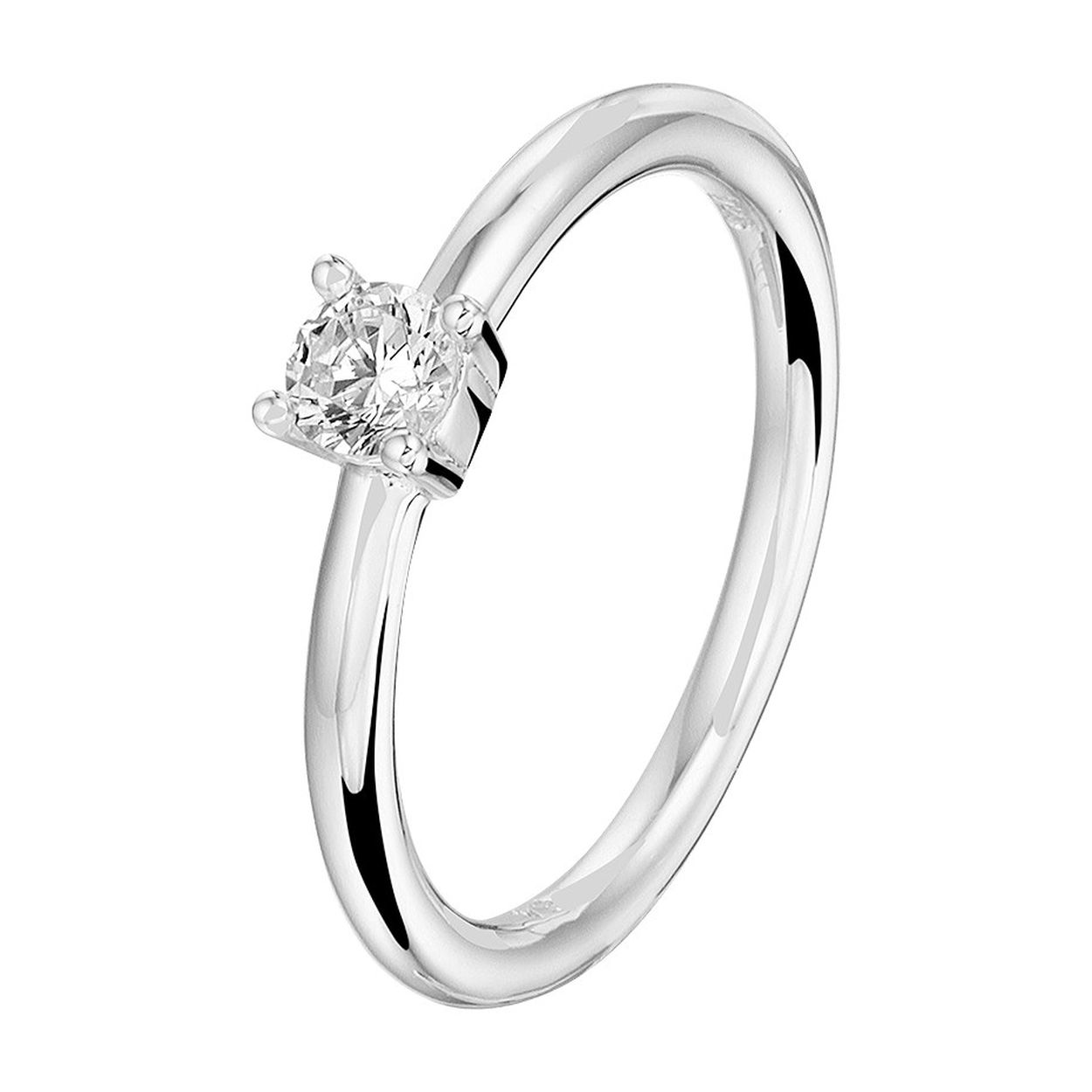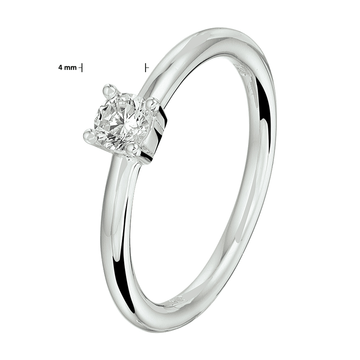 Gerhodineerd 925 zilveren ring uitgevoerd met een schitterende zirkonia. De ring heeft een breedte van 4mm.