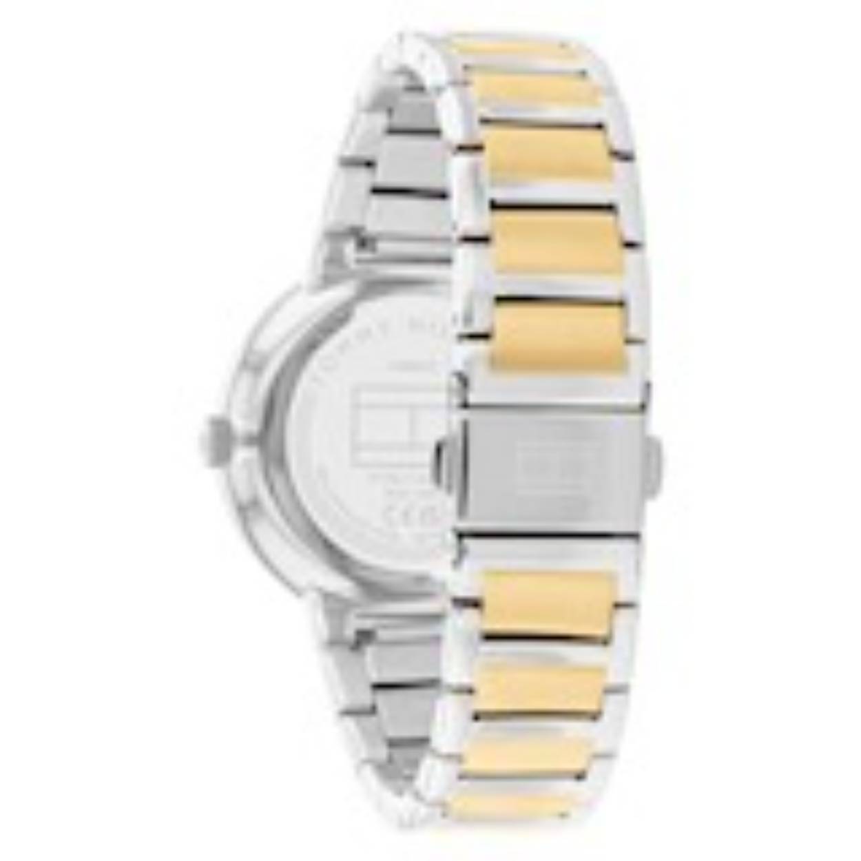 Een vrouwelijk elegant dameshorloge die je zeker aan je collectie kunt toevoegen. Het stalen dameshorloge heeft een ronde zilverkleurige kast met een goudkleurige bezel en een zilverkleurige bewerkte wijzerplaat met dag,- datum en 24-uursaanduiding. De uren worden aangegeven door kristallen en het horloge heeft goudkleurige accenten en wijzers, dit geeft het horloge net wat meer klasse. Aan het horloge zit een bi-color schakelband met een vouwsluiting. Het horloge heeft een mineraalglas, een doorsnee van 36mm en is 3 ATM.