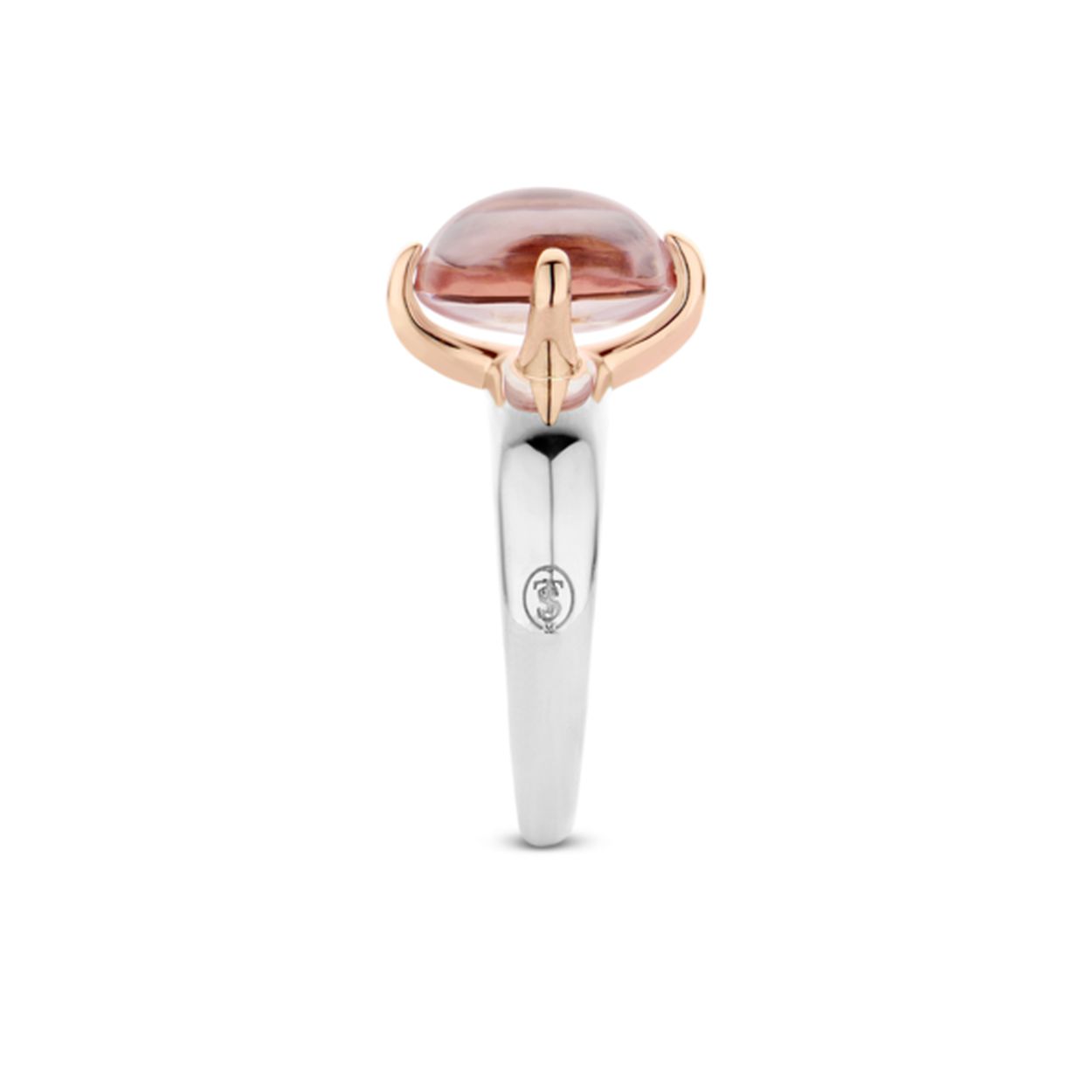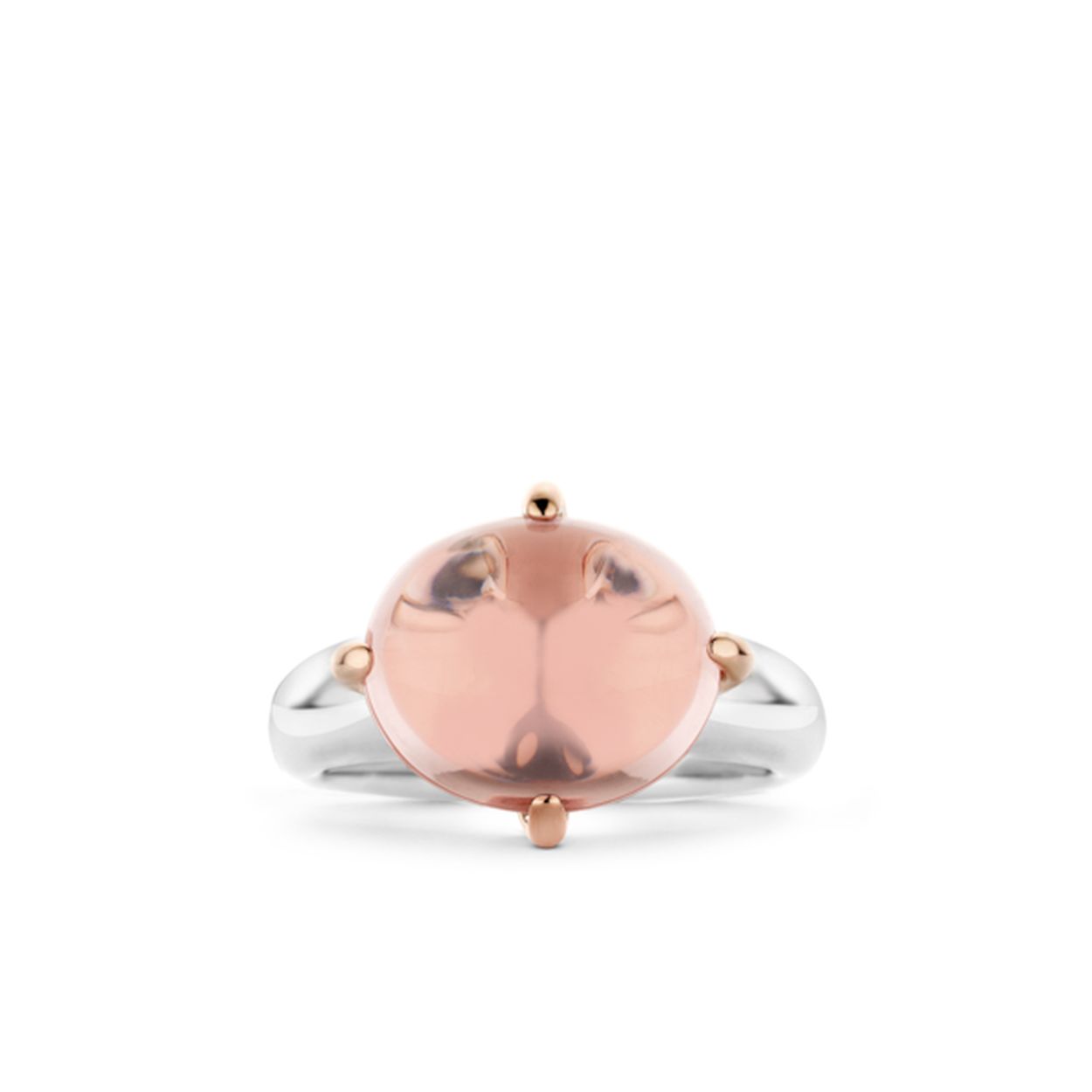 Als je een statement wilt maken is deze ring onmisbaar in je sieraden collectie. Wat bij de designers tijdens het schetsen centraal stond was sophisticated swag. De grote steen bovenop de ring gemaakt van een zachtroze kleurig kristal heeft een mooie ronde vorm. Dit maakt de ring extra vrouwelijk en makkelijk draagbaar. De ring is gemaakt van 925 sterling zilver met een roségoud kleurige touch. Het sieraad is gerhodineerd voor bescherming en extra glans zodat de kristal volledig tot zijn recht komt. Combineer de ring met de bijpassende oorbellen en ketting en rock je look.