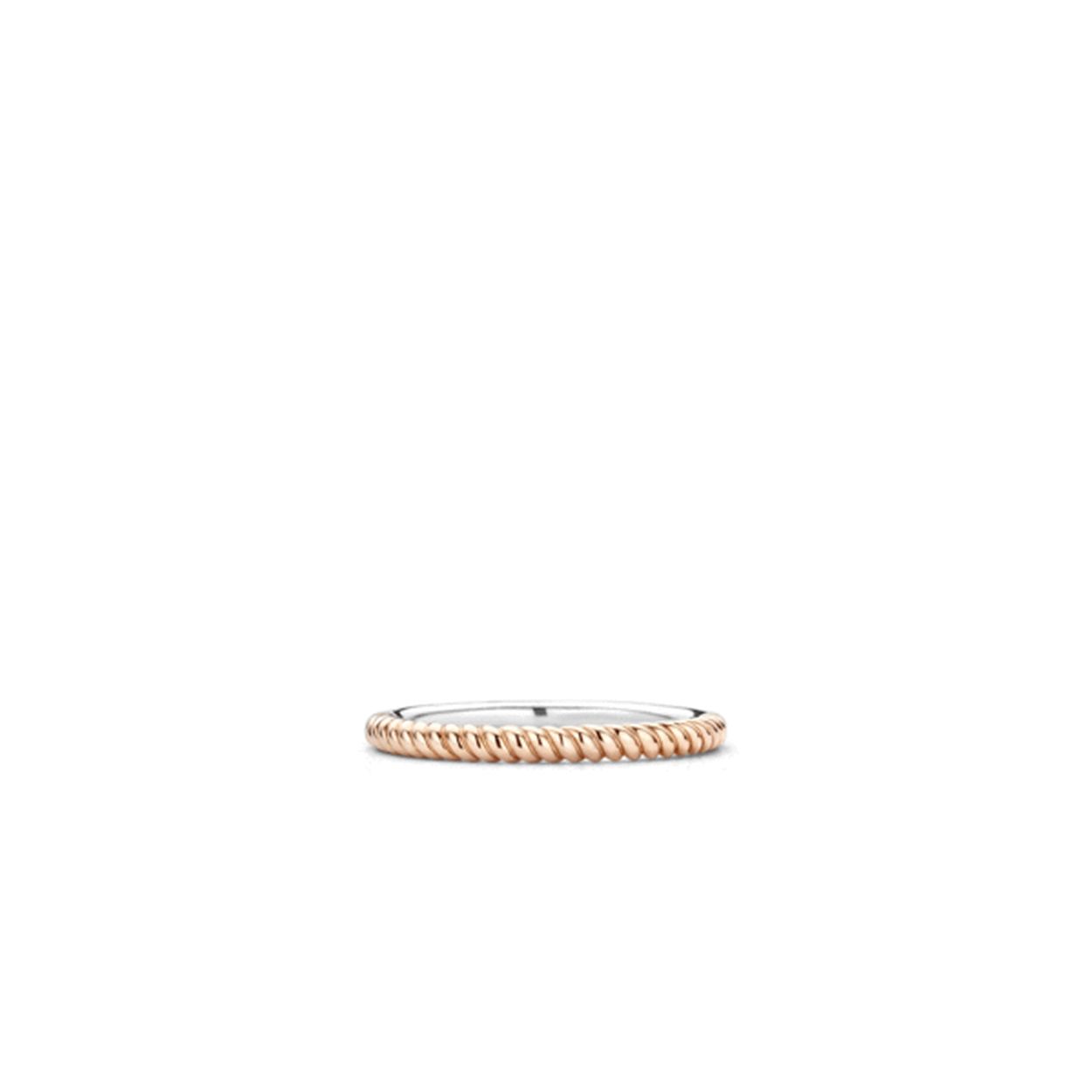 Deze TI SENTO - Milano ring is de basic onder de aanschuifringen en tevens de ultieme must have om mee te combineren in een stapel ringen. Het gedraaide zilver heeft een 18 karaats ros�gouden laag. De strakke uitvoering van de ring zorgt voor een naadloze aansluiting op andere ringen.