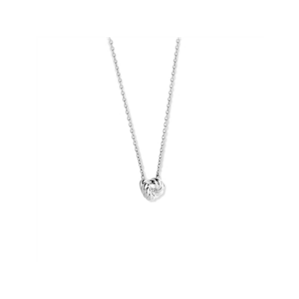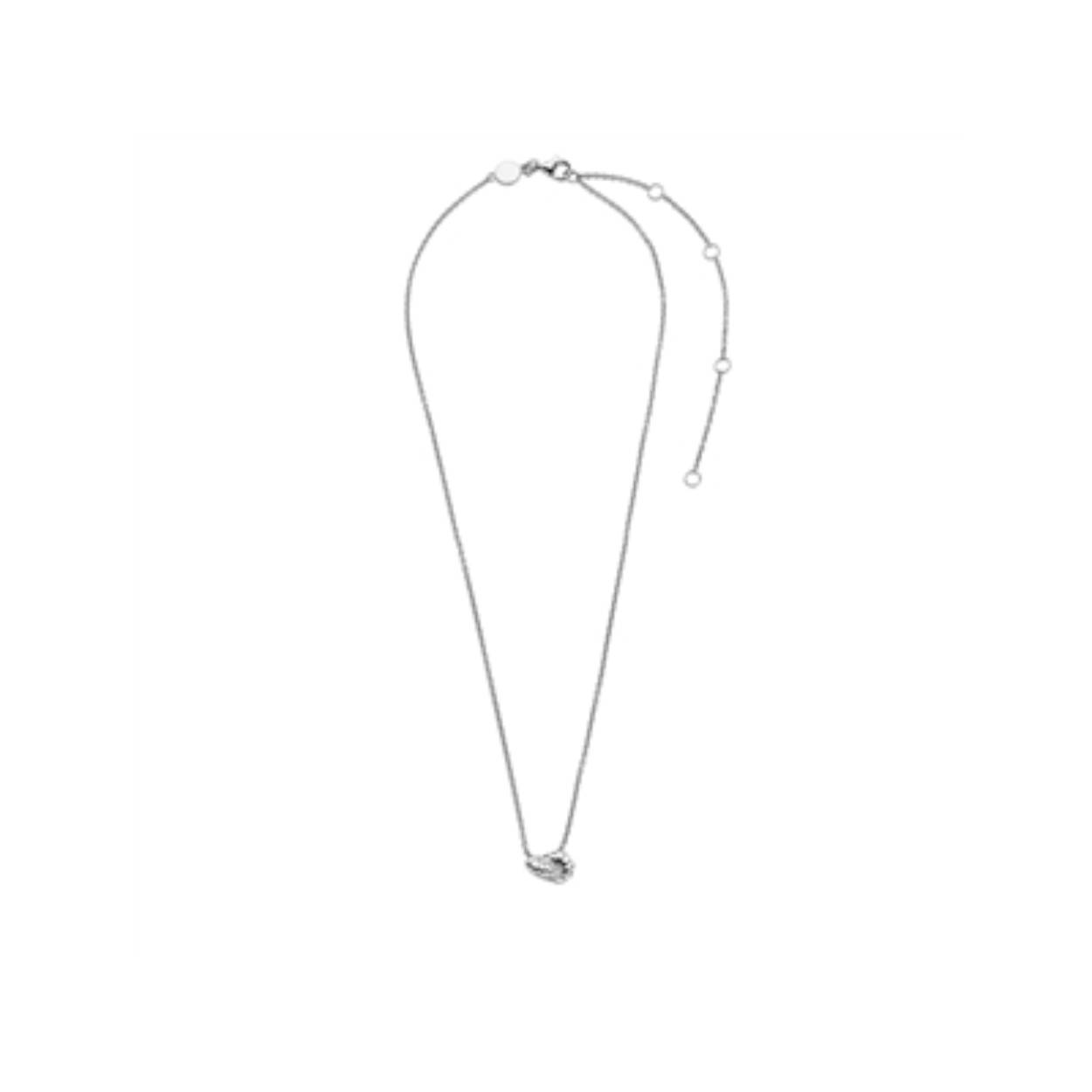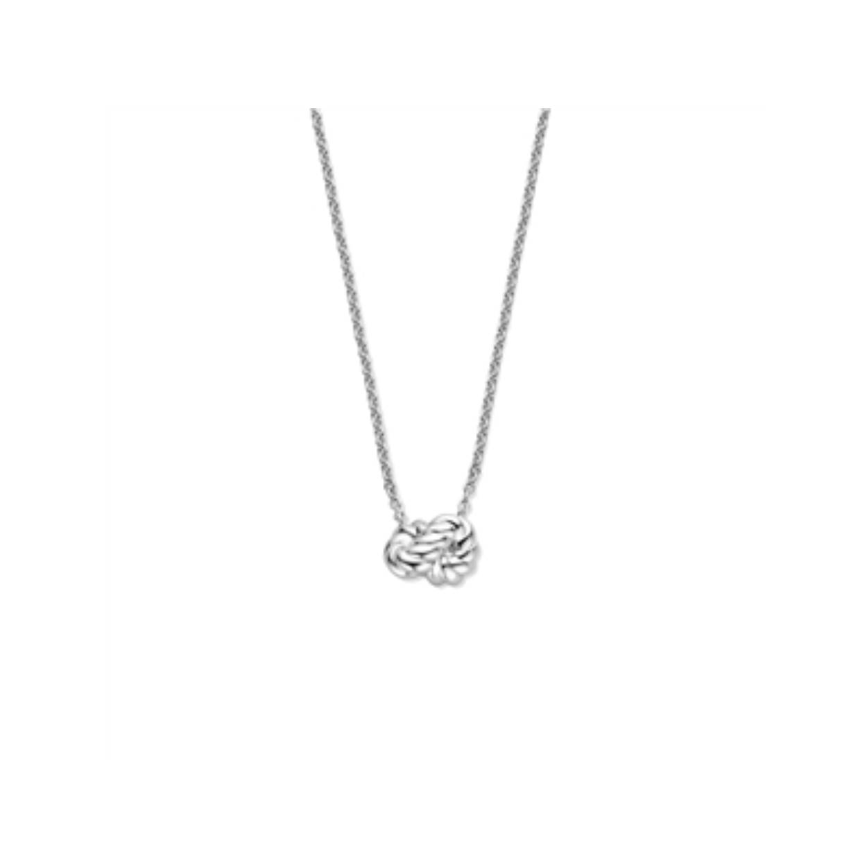 Dit zilveren Ti Sento Milano is gemaakt van zilver heeft een hanger met een gevlochten structuur in de vor van een knoop. Dit collier is in lengte verstelbaar van 38-48 cm.