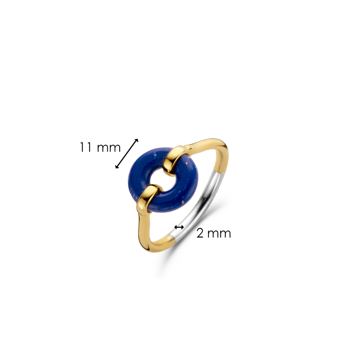 Het pronkstuk van deze TI SENTO - Milano goudkleurig zilveren ring 12237BL is de lapis blauwe steen in het midden. De goudkleurige ring is gemaakt van 925 sterling zilver. De diepe lapisblauw kleur staat symbool voor de levendige energie van de kosmos. De ronde vorm maakt het een artistiek geheel. Draag het met andere goudkleurige of zilverkleurige ringen voor een statement look.