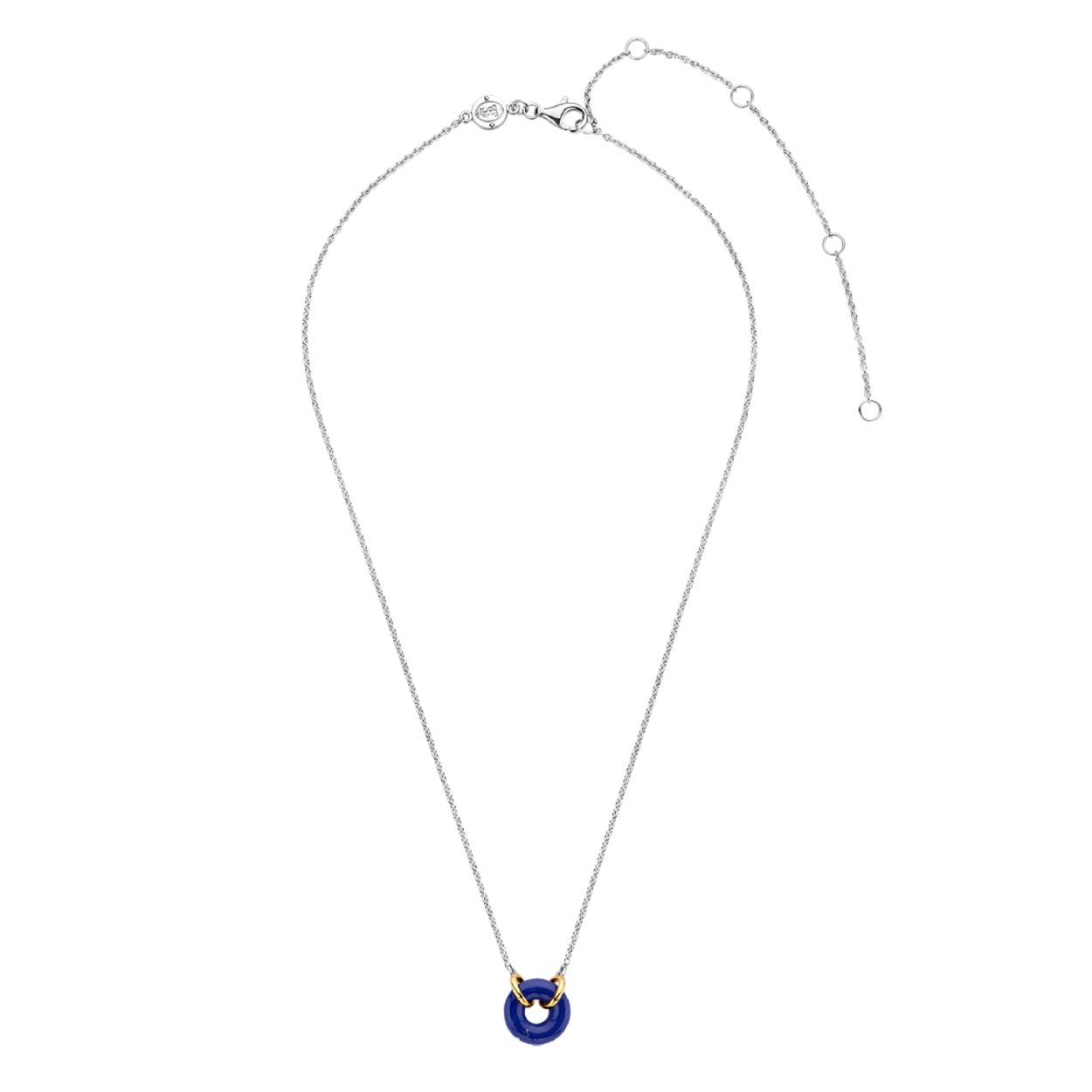 Het pronkstuk van deze TI SENTO - Milano zilveren ketting 3971BL/42 is de lapis blauwe steen in het midden, omhuld door een sierlijke goudkleurig zetting. De ketting is vervaardigd uit 925 sterling zilver. De ronde vorm maakt het een artistiek geheel en de kleur weerspiegelt de donkerblauwe tinten van een hemel in de nacht. Met dit juweel zul je schitteren, altijd en overal. De extra veilige sluiting is speciaal ontworpen zodat het altijd bij je blijft. De lengte van de ketting is 42 cm.