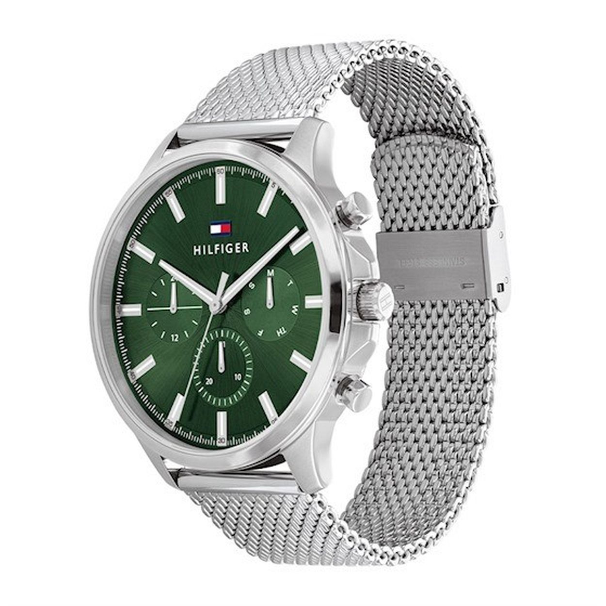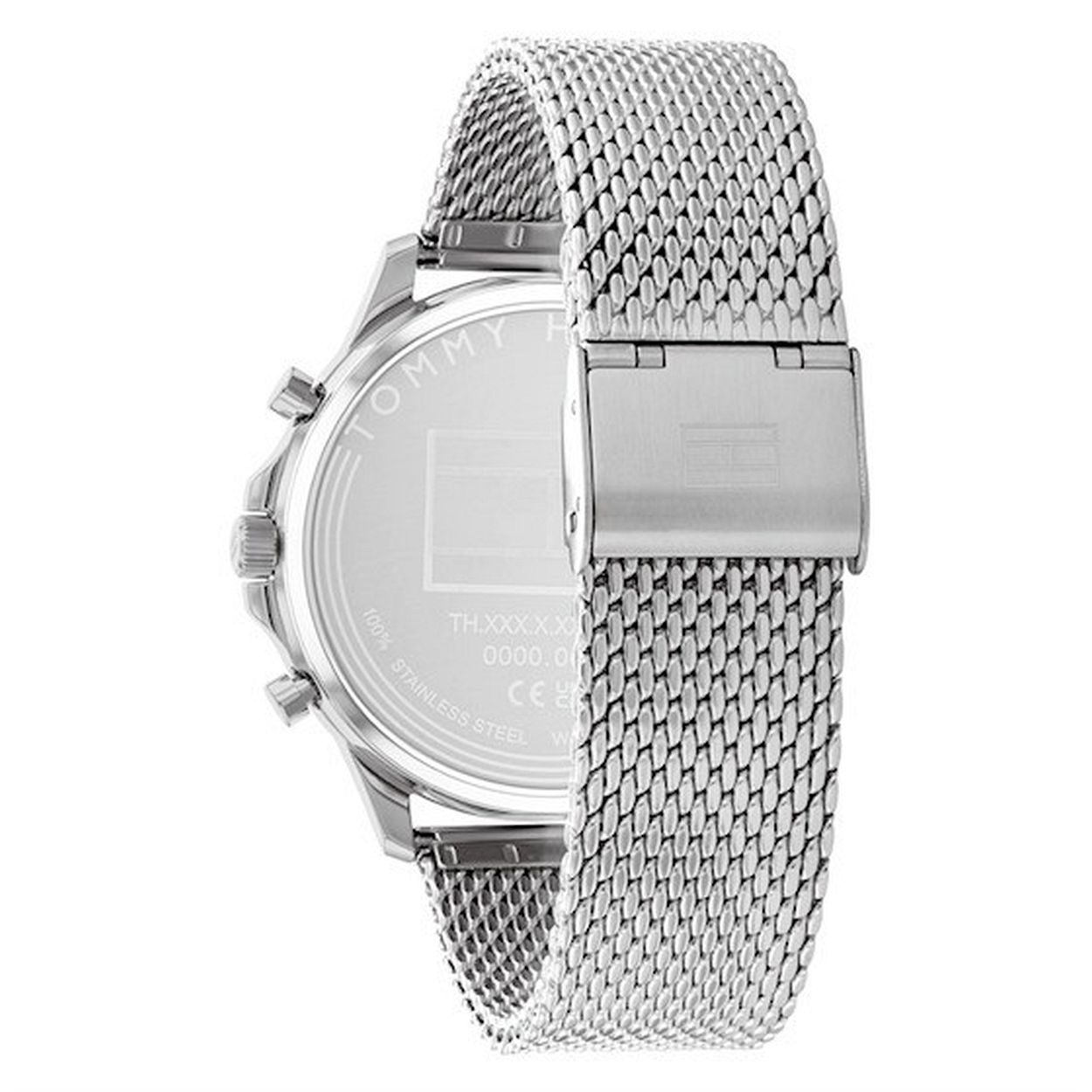 Dit Tommy Hilfiger horloge heeft een Roestvrijstaal kast met een diameter van 44 mm en is voorzien van een metalen band.