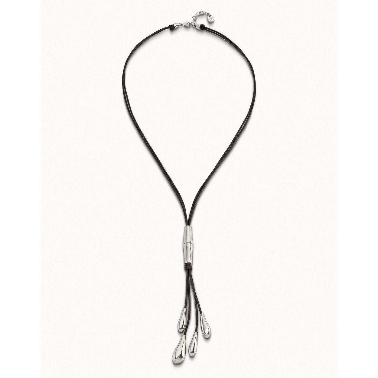 LANGE LEREN LATIGO KETTING MET 2 BUIZEN EN 4 FRANJES MET ZILVEREN DRUPPELS