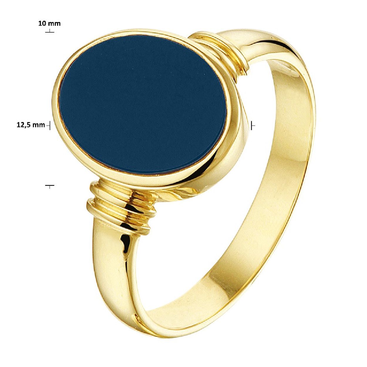 De ring is gemaakt van geelgoud en is goudkleurig. Het is een sieraad voor dames.