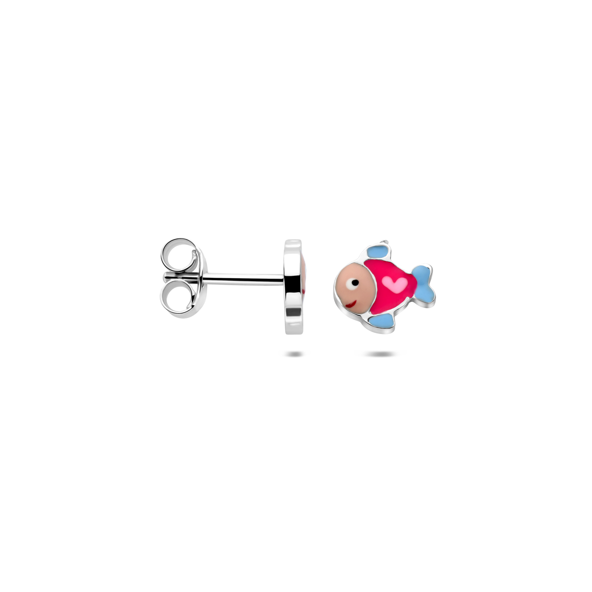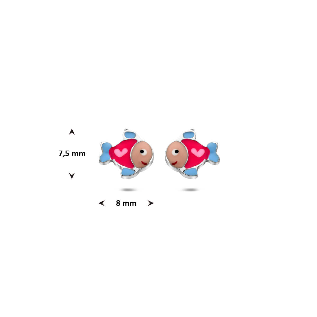 Gerhodineerd 925 zilveren oorknoppen uitgevoerd in de vorm van een vis. De oorknoppen hebben een afmeting van 7,5x8mm.